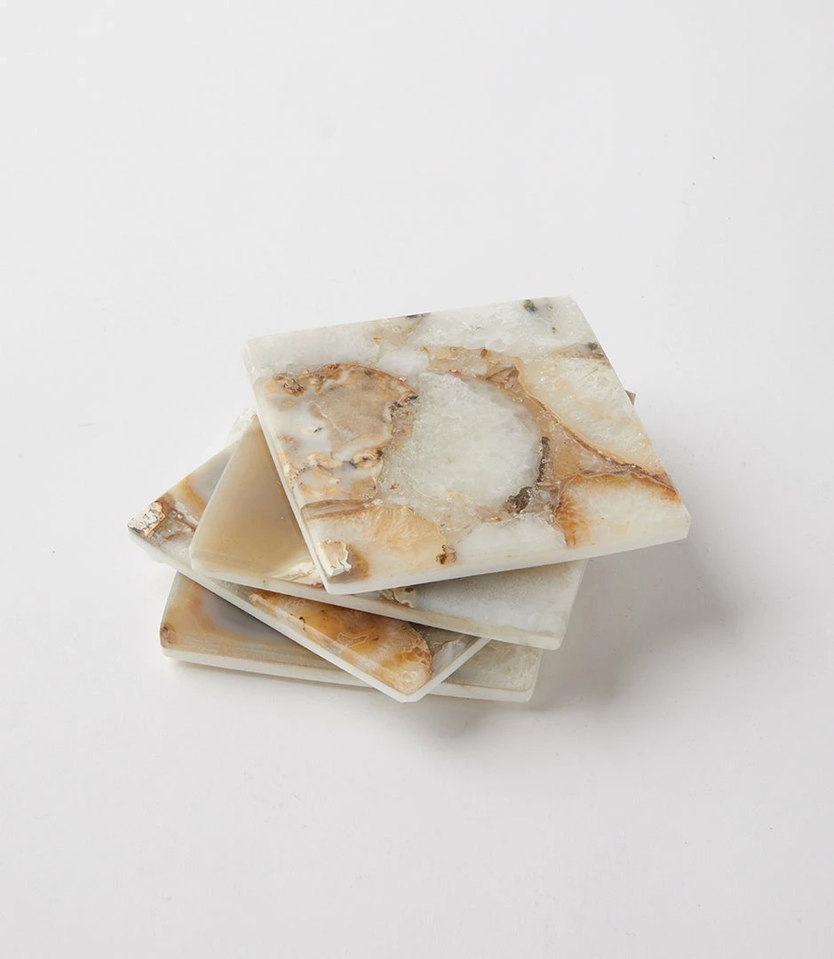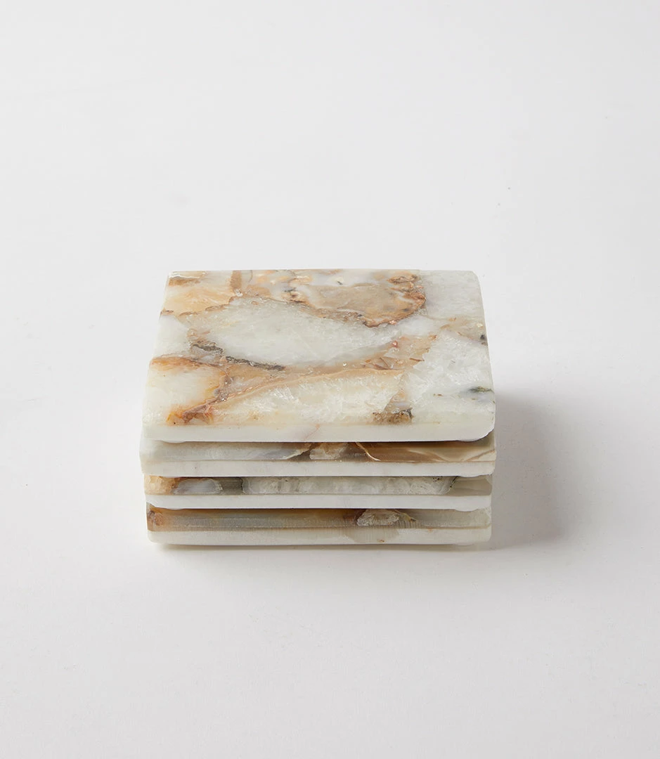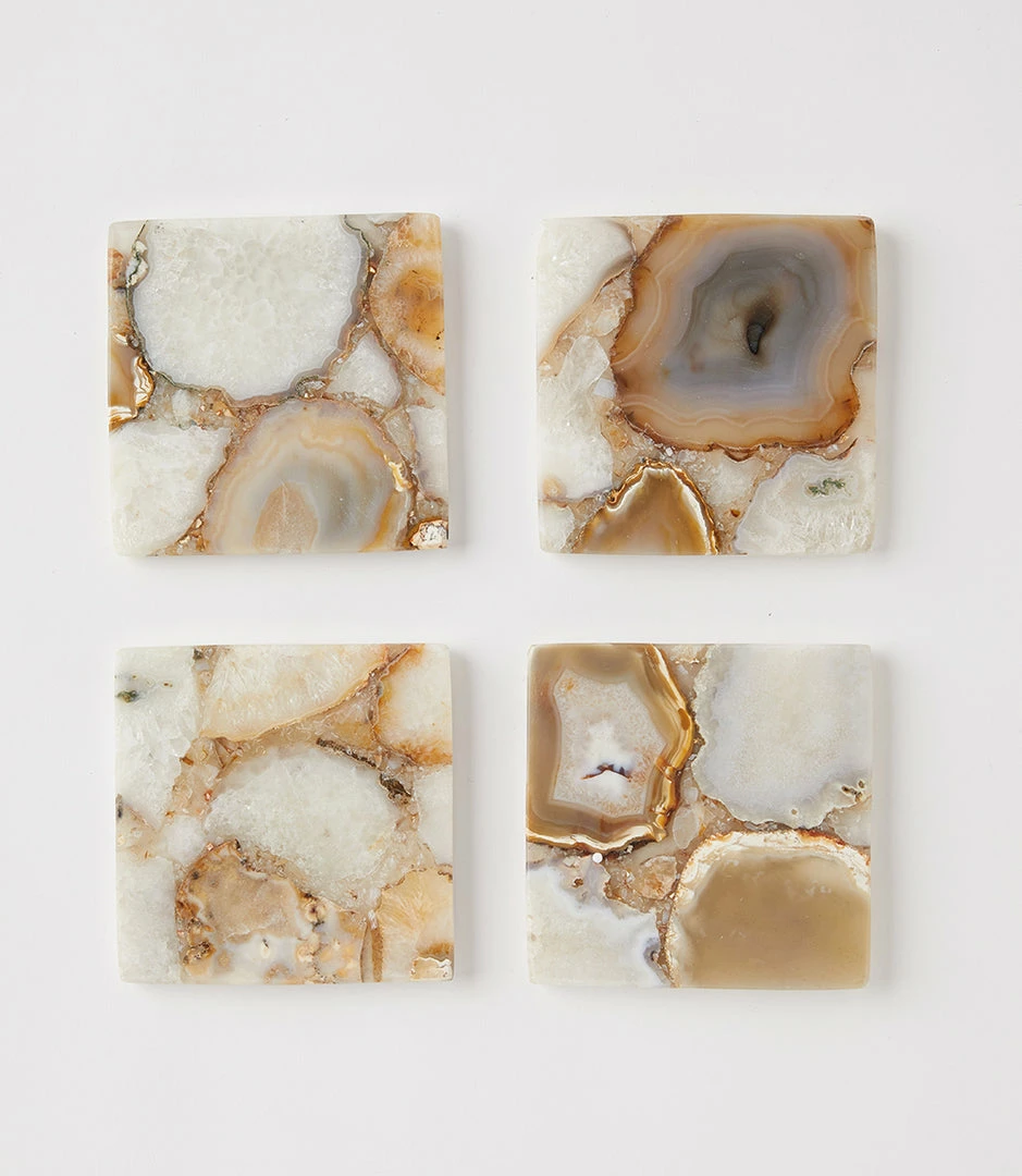 Add a touch of beauty and texture to your dinner table with these handcrafted coasters cut from agate and marble quartz.