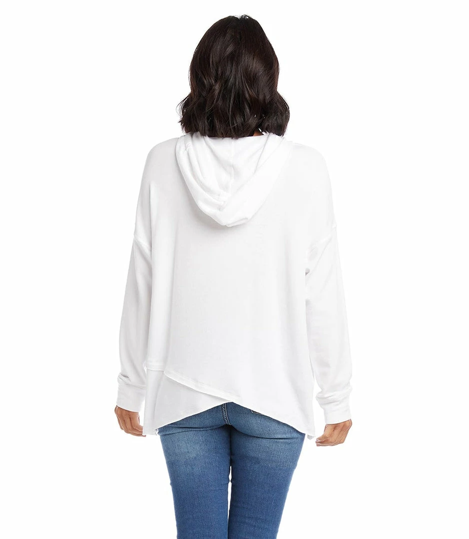 Update your athleisure wardrobe with this ultra-soft fleece knit hoodie. Its asymmetric raw edge hem enhances the contemporary feel.