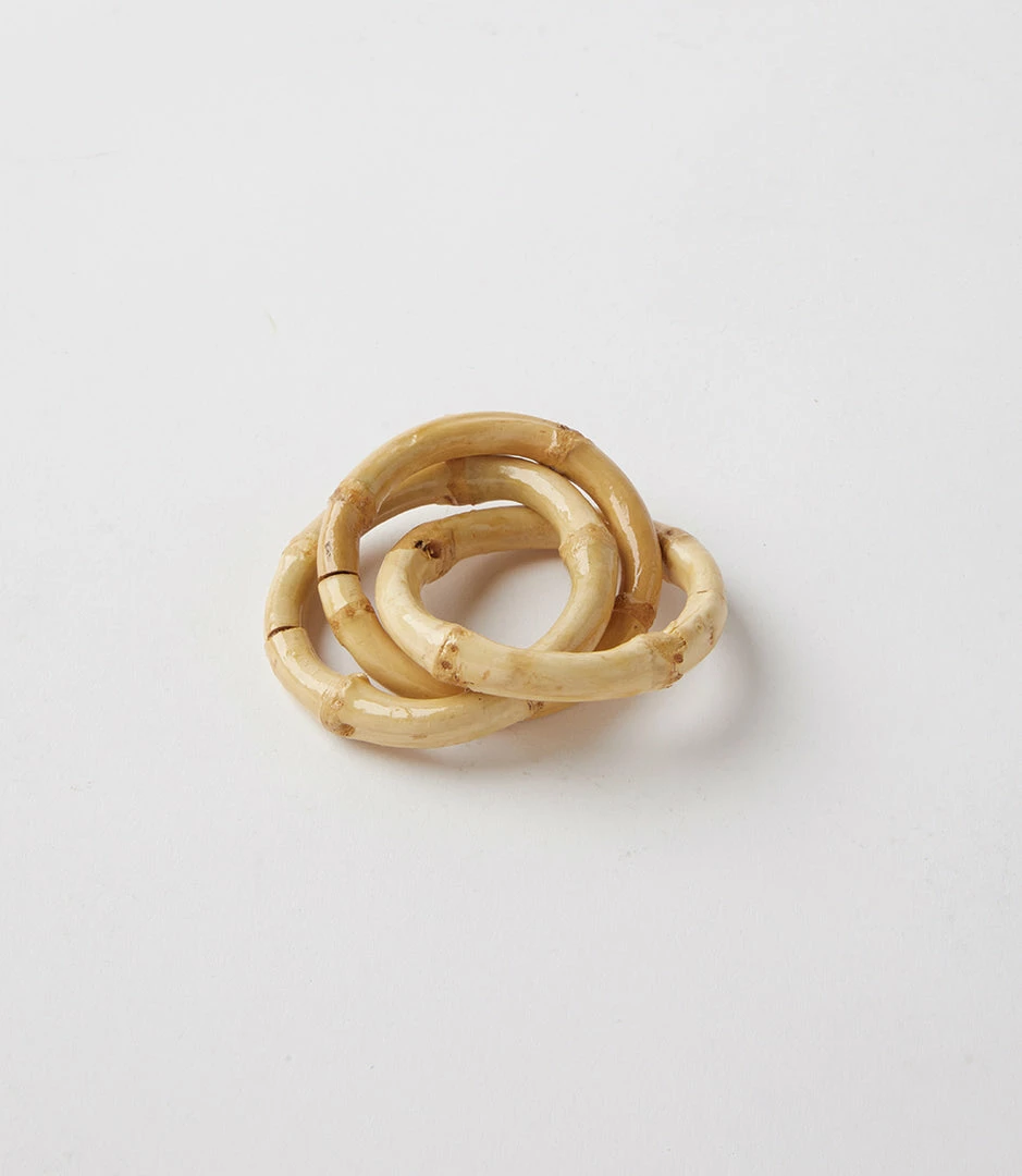 Add a touch of warmth and texture to your space with these napkin rings constructed from bamboo. Its durable construction, natural elements, and tight weave make these napkin rings perfect for outdoor occasions. Due to the natural characteristics of this item, each piece will have variances, no two are the same.
