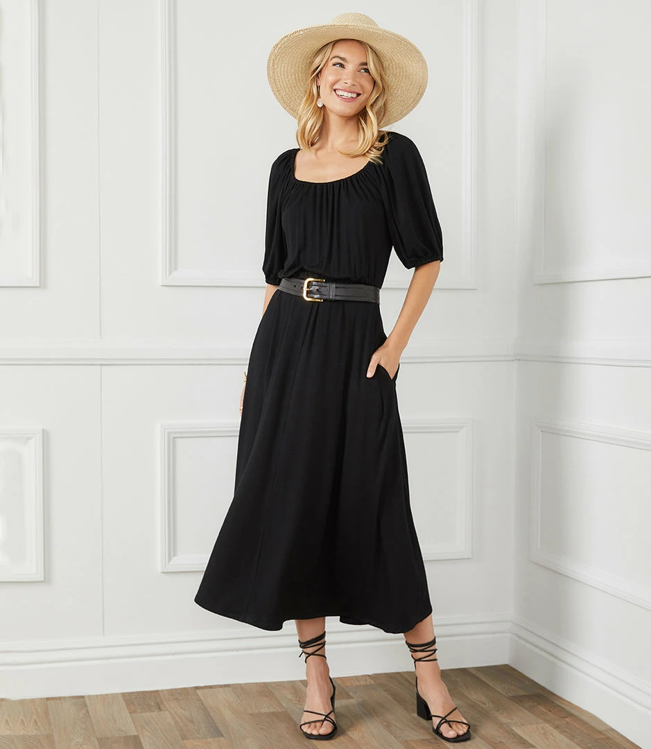 Our beloved Artisan Dress is reinvented with charming peasant sleeves. This versatile, everyday dress is instantly elevated with its flattering cinched waist and swingy skirt. It’s outfitted with pockets for additional ease.