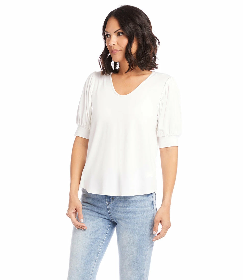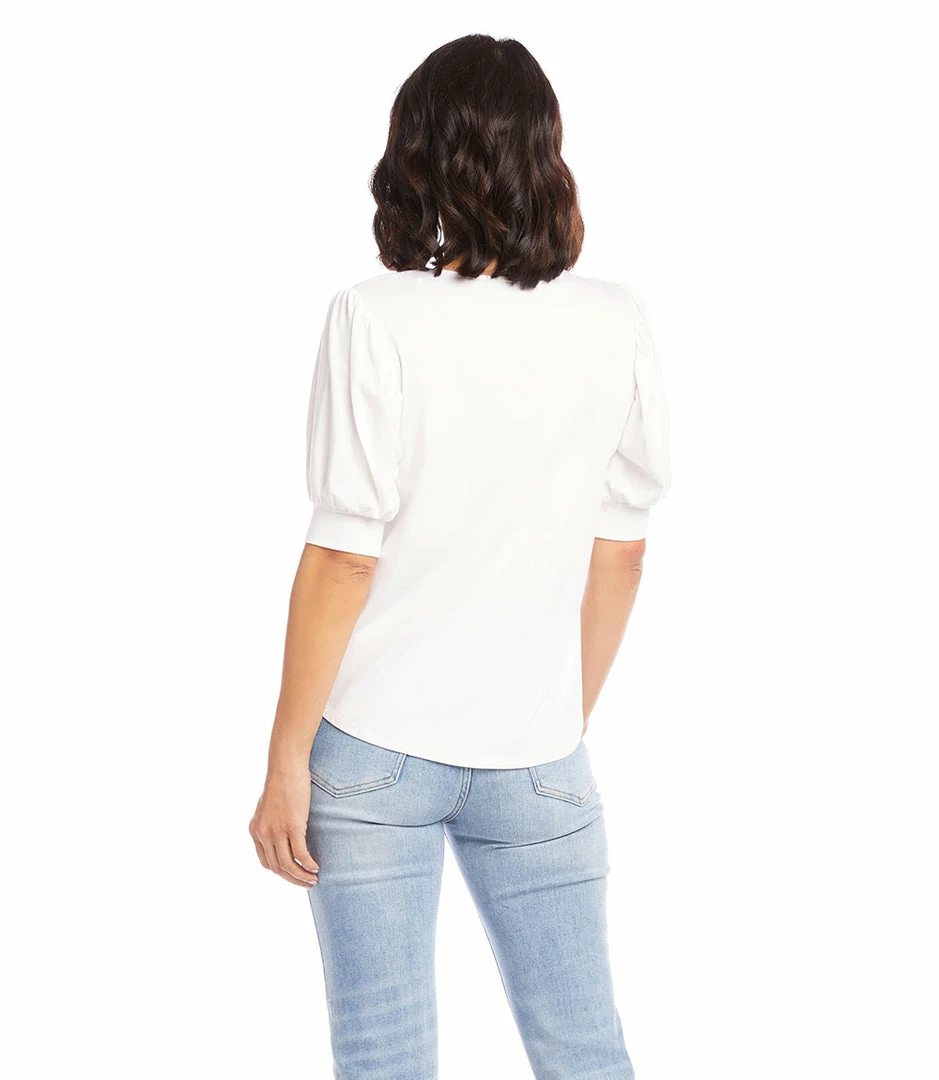 Statement-making puff sleeves define this jersey-knit blouse that can be worn for work or the weekend.