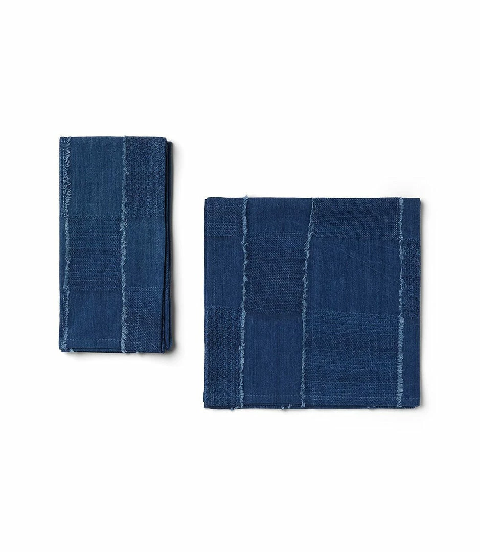 Designed and crafted in Los Angeles, this 100% Cotton napkin set features a charming patchwork finished with feathered fringe seams. Complete the look with our rattan napkin rings for a stunning dinner tablespace. Due to the natural characteristics of this item, each piece will have variances, no two are the same.