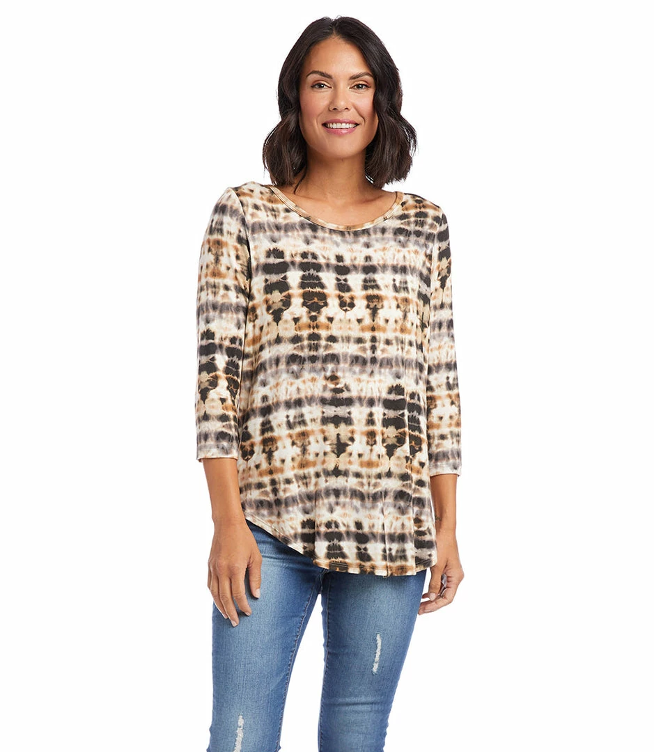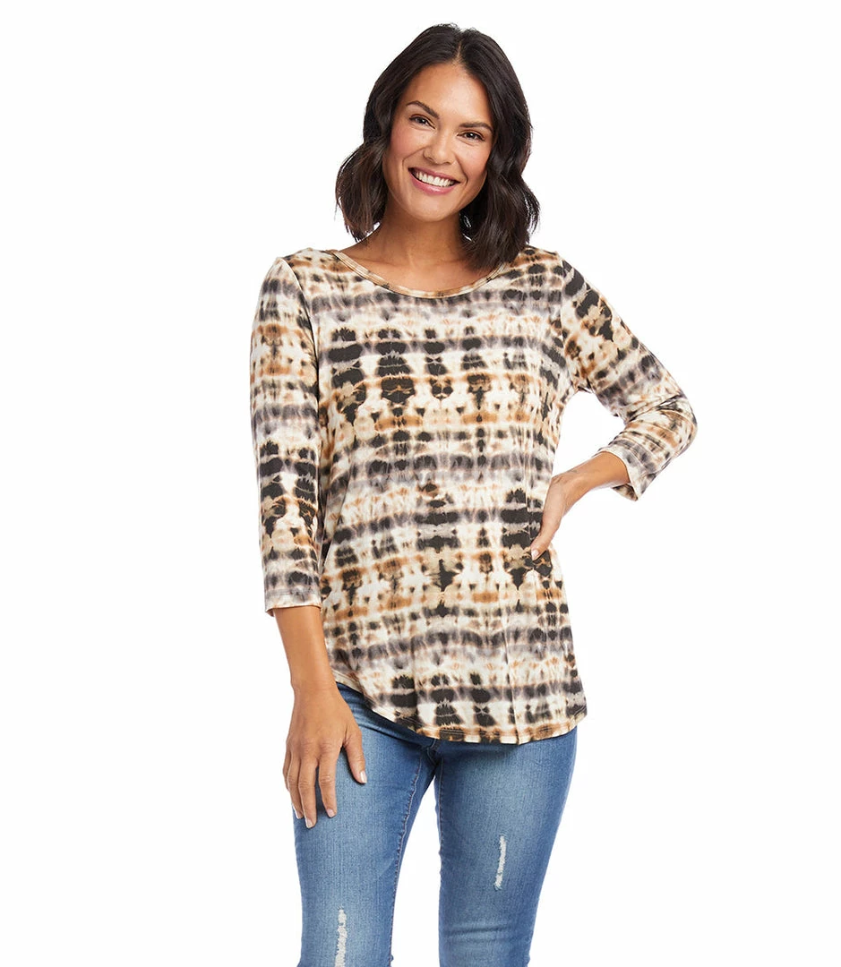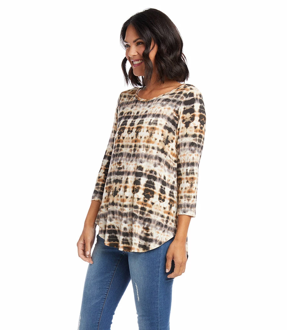 Add dose of bohemian charm with this super soft knit top covered in a mesmerizing tie-dye pattern.