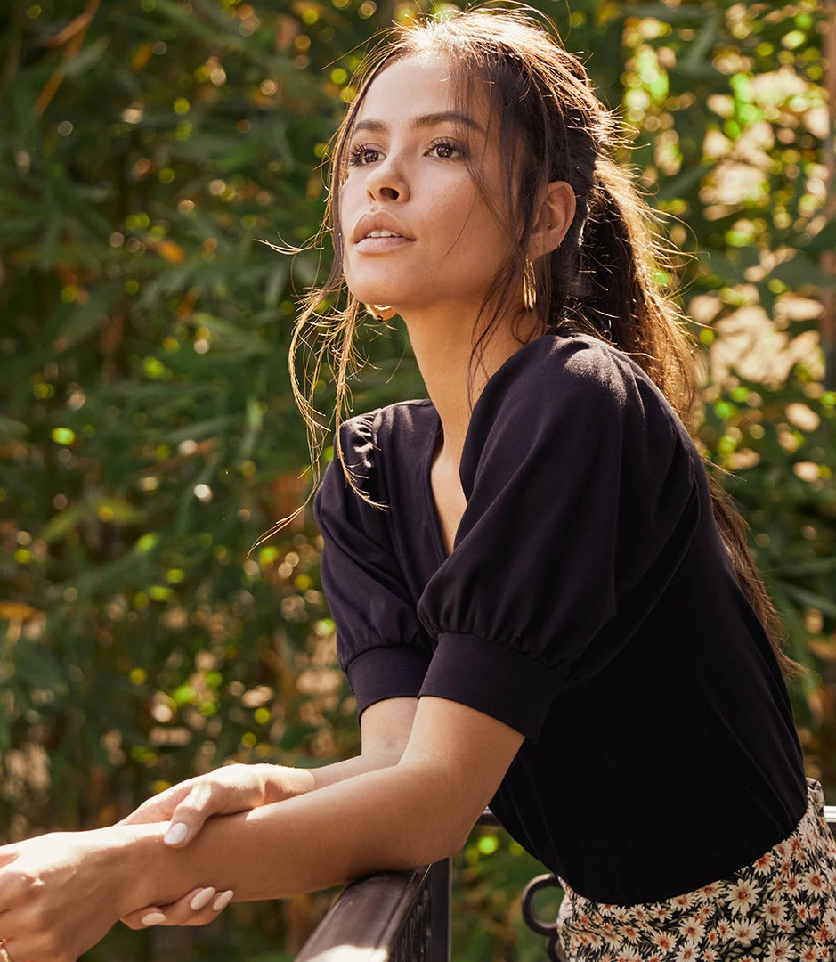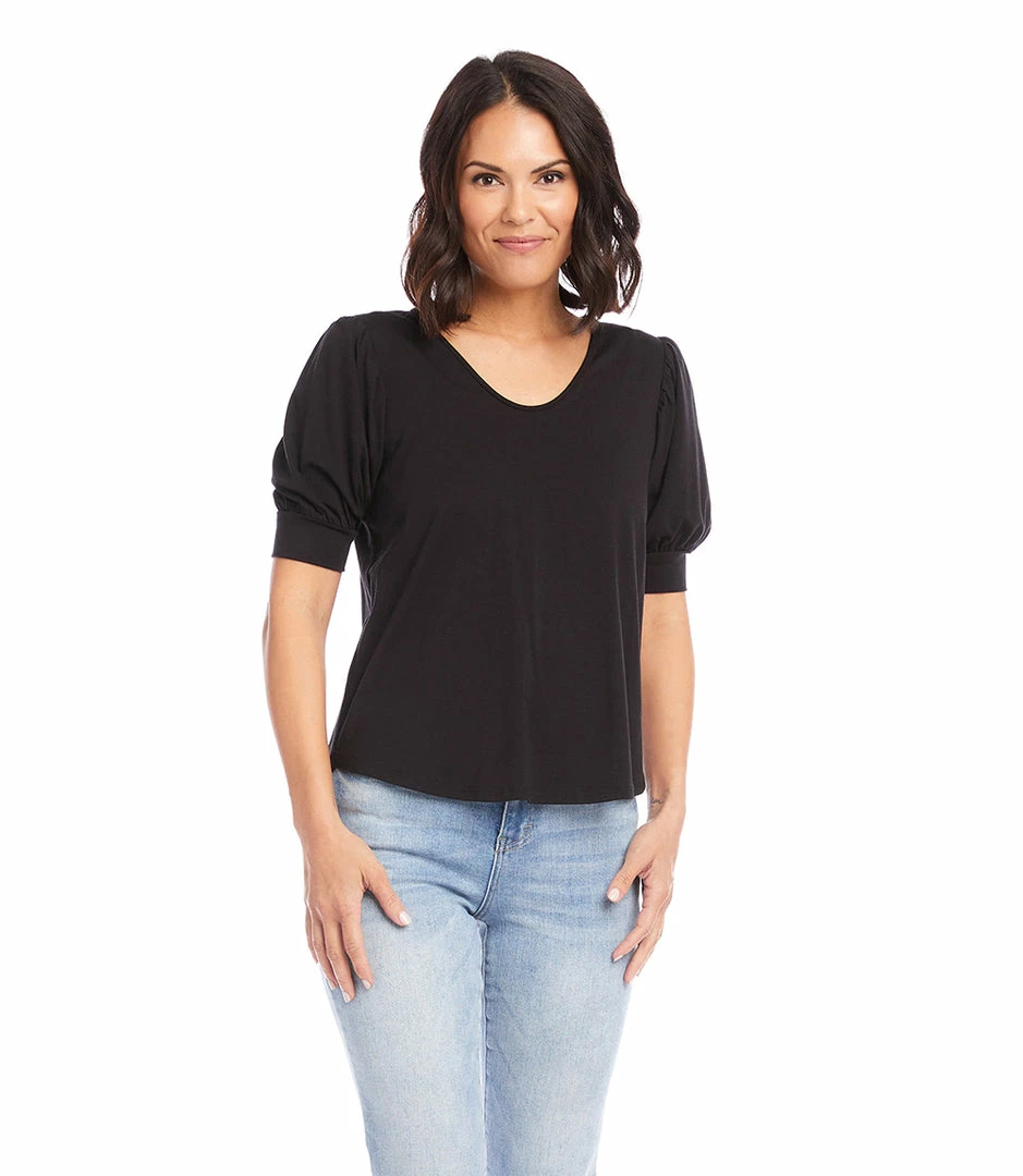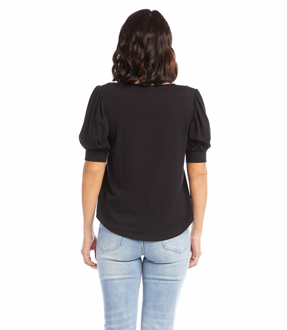 Statement-making puff sleeves define this jersey-knit blouse that can be worn for work or the weekend.