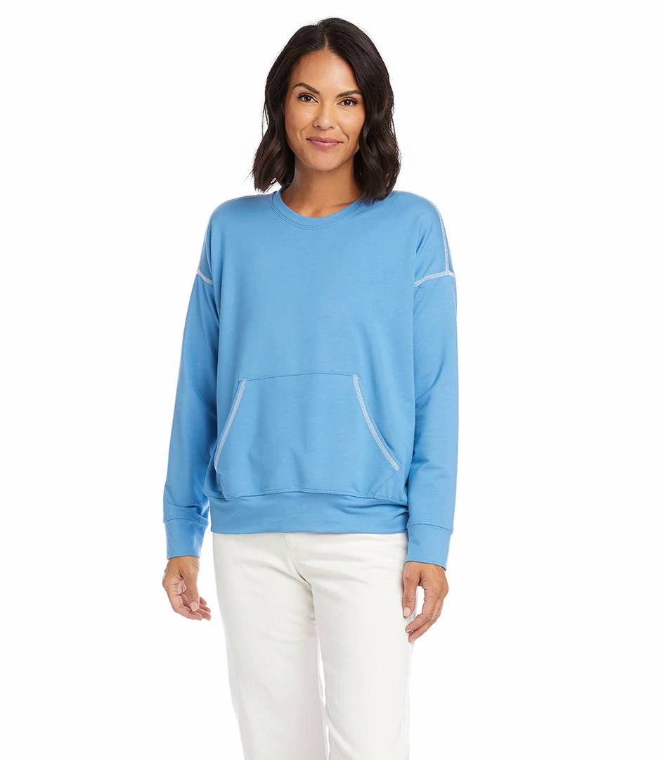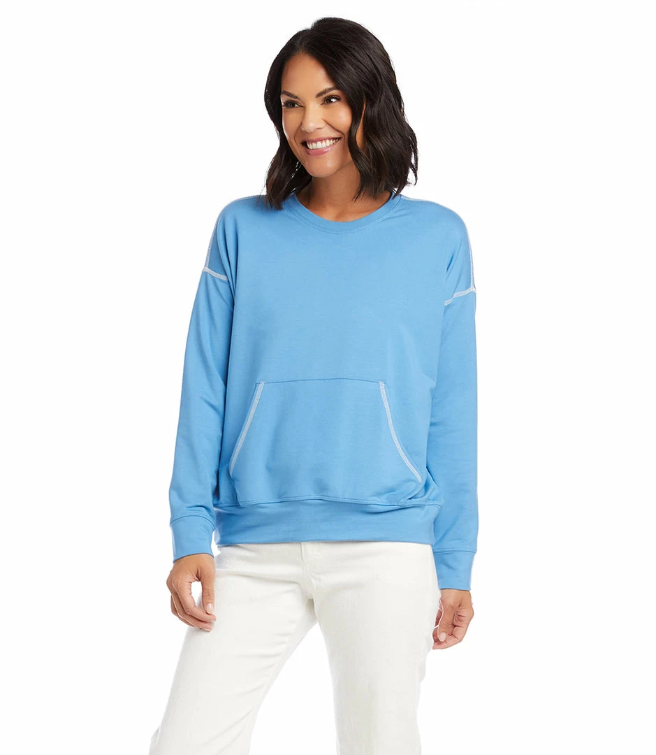 Contrast stitching details this ultra-soft pullover crafted from french terry. This pullover is perfect for quick outings or lounging at home. It also features a cozy kangaroo pocket.