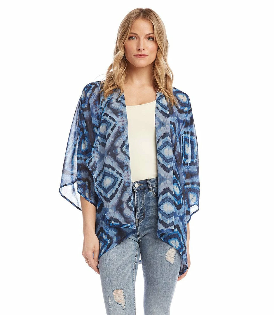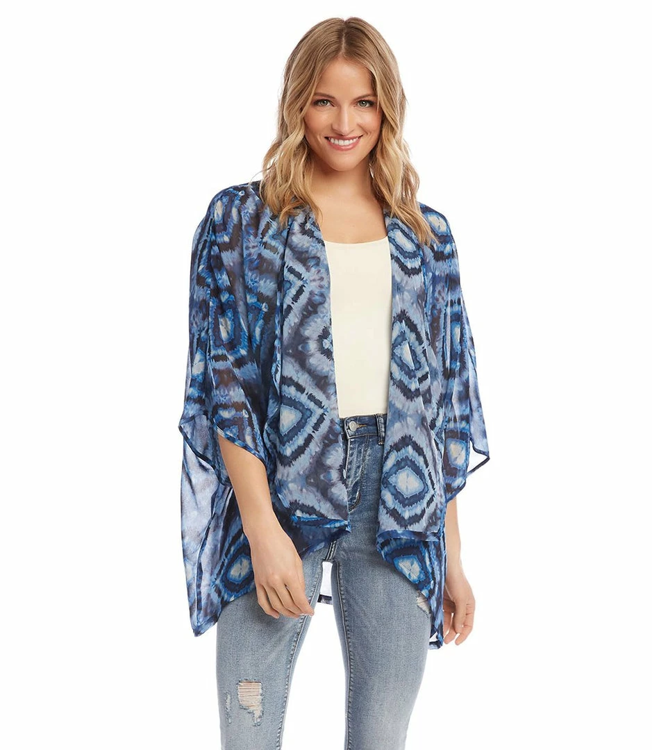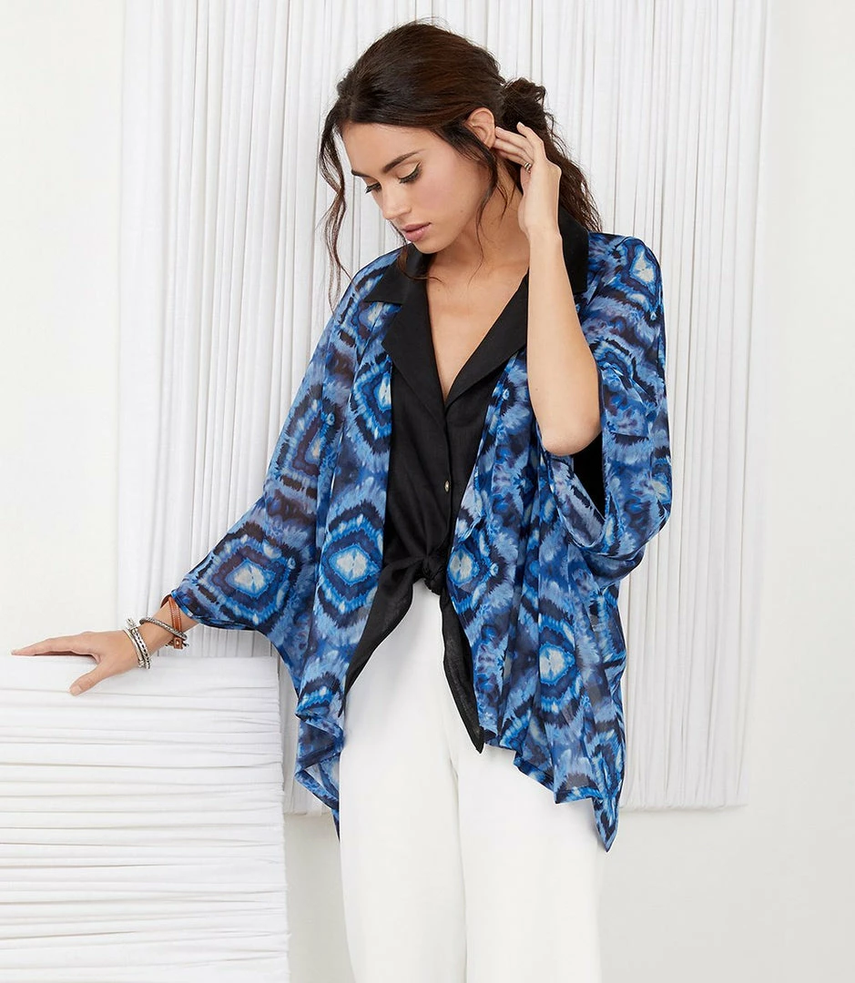 Inspired by the brilliant blue colors of Portuguese tiles, this sheer jacket is perfect for warm summer weather.