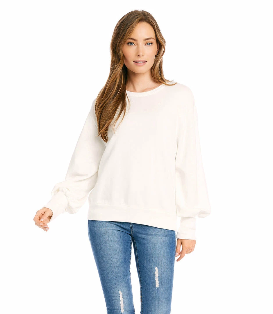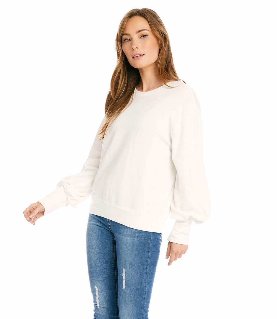 Indulge in the buttery-softness of this fleece sweatshirt detailed with romantic puff sleeves for an alluring finish.