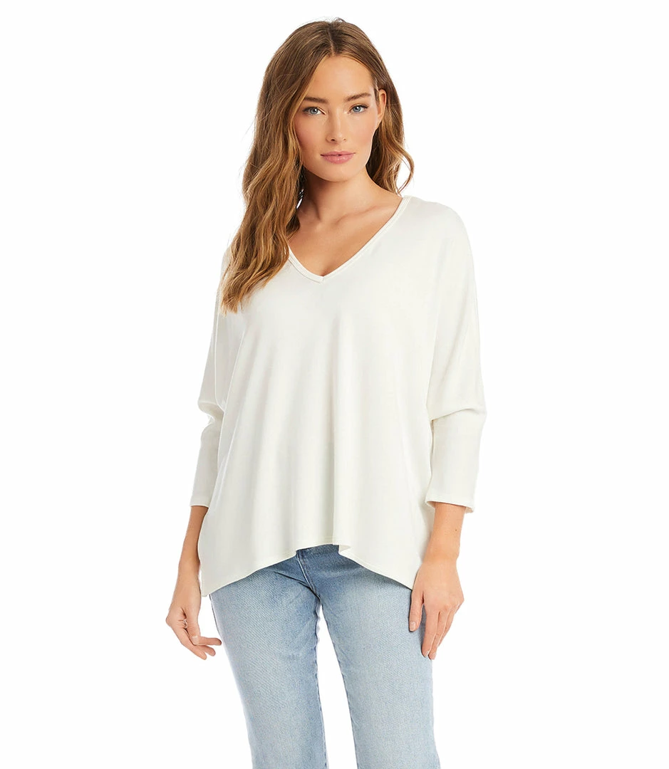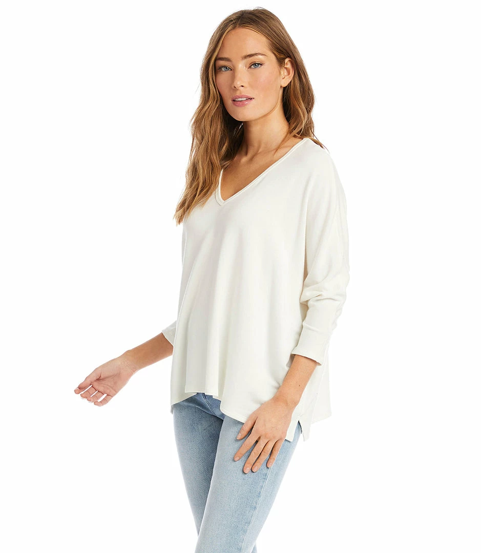With an oversized silhouette and buttery soft french terry fabrication, this v-neck top is sure to be wardrobe staple. Perfect for layering or simply paring with denim.