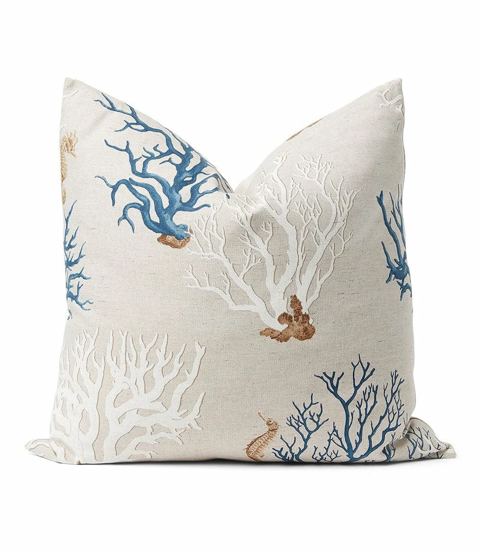 Earth hued coral stems give our textured linen pillow a nautical aesthetic. This plush pillow can be easily layered with natural toned pillows. Designed and crafted in Los Angeles. Includes pillow cover and feather insert. Due to the natural characteristics of this item, each piece will have variances, no two are the same.
