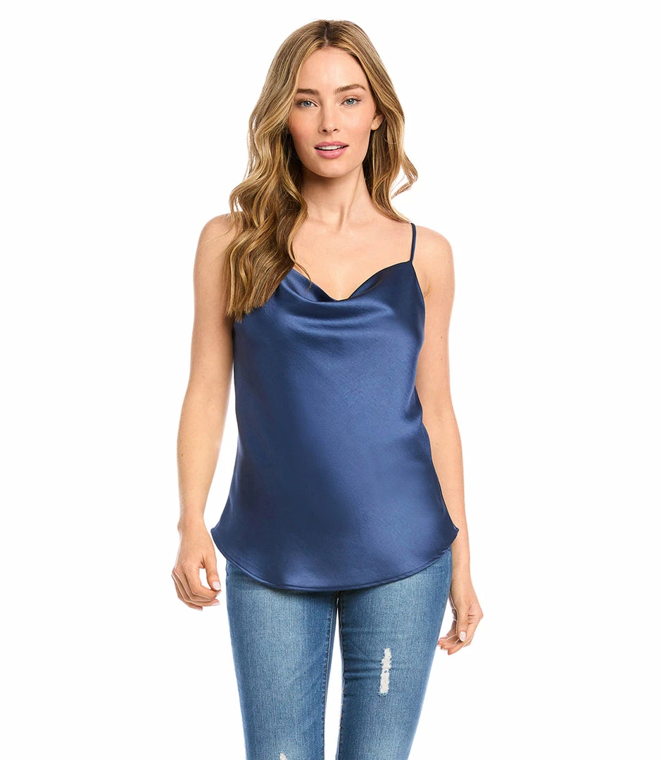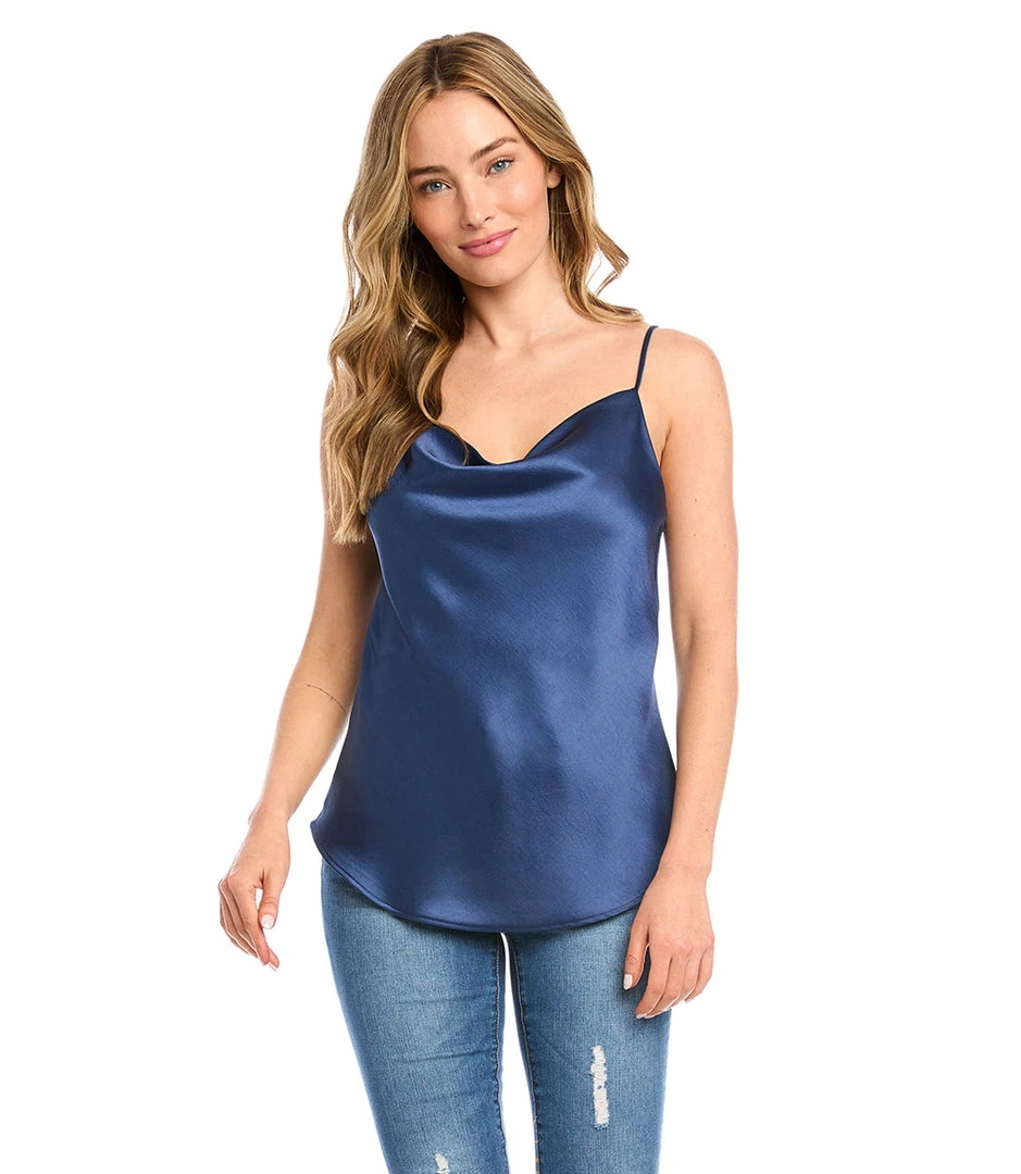 Cut from luxurious heavy satin, this top is detailed with an alluring draped neckline. The perfect layering piece – soft, shimmering, and easy to dress up or down.