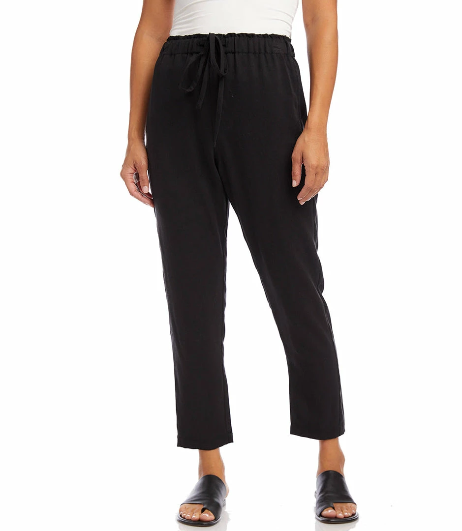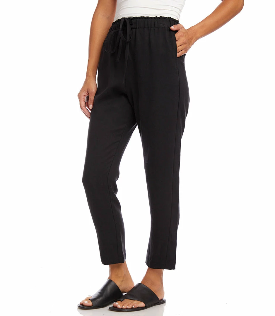 Lightweight fabric shapes these versatile tapered pants topped with an easy elastic waist. It also features side pockets.