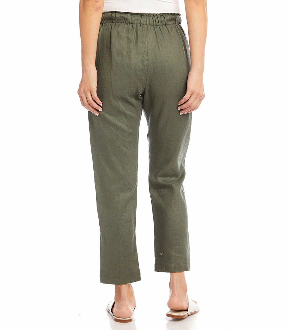 Casual yet polished, these pants are made with from cool and breathable linen. An elasticized drawstring waistband and side slant pockets add instant functionality and comfort.