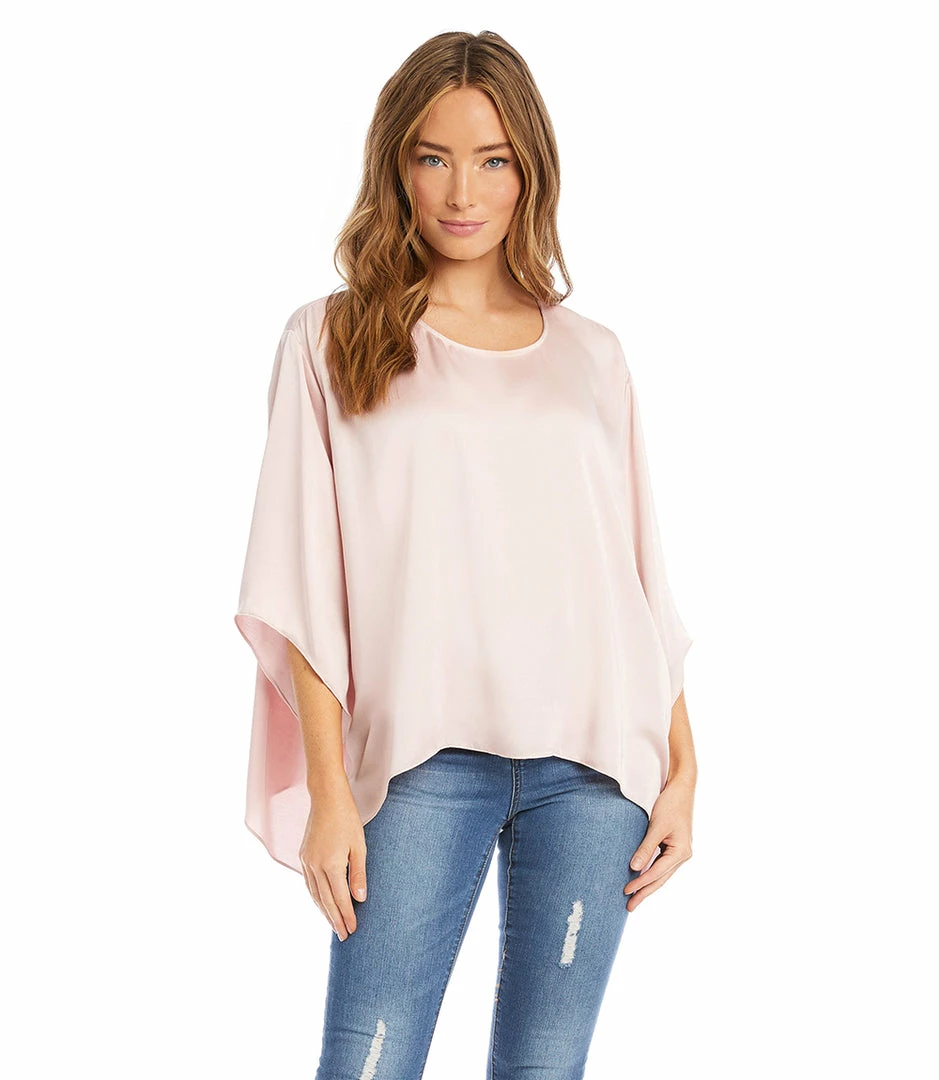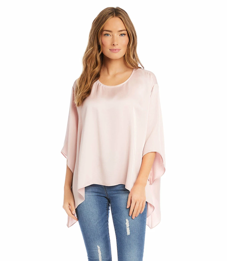 Cut from rich silky satin, this breezy top offers a billowy flare hem for soft movement. It pairs perfectly with your favorite denim.