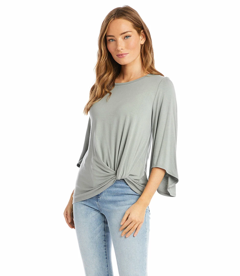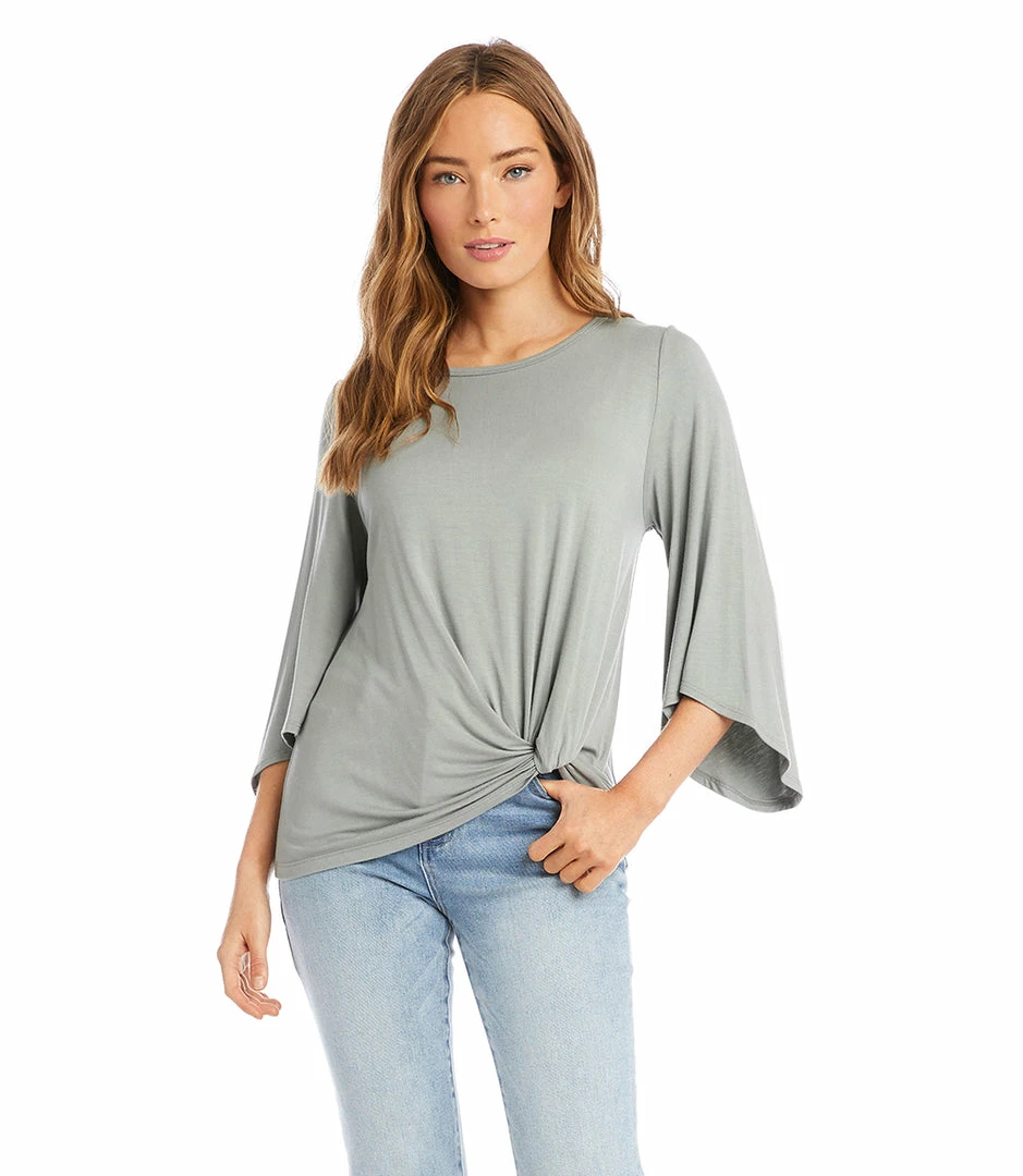 Flouncy flare sleeves add soft movement to this jersey-knit top detailed with a stylish pick-up hem. This top pairs perfectly with high-waisted jeans.