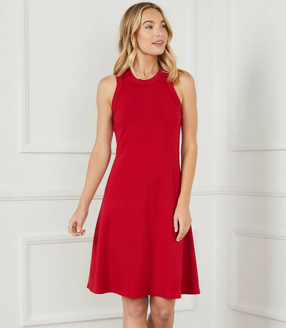 One of our most-loved dresses, this simple, yet stylish, wardrobe essential starts with a high neckline that falls into a flattering a-line silhouette. Easy to wear year round, any day of the week.