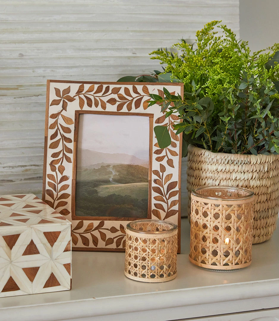 Handcrafted using a unique form of craftmanship, its wood floral pattern is inlayed into a resin base for a lux look. It’s finished with subtle texture and shine. Due to the natural characteristics of this item, each piece will have variances, no two are the same.