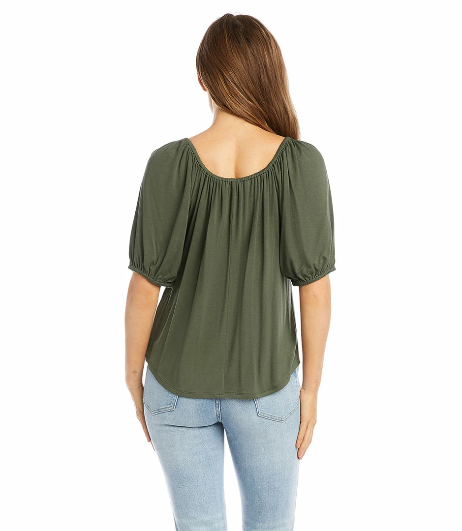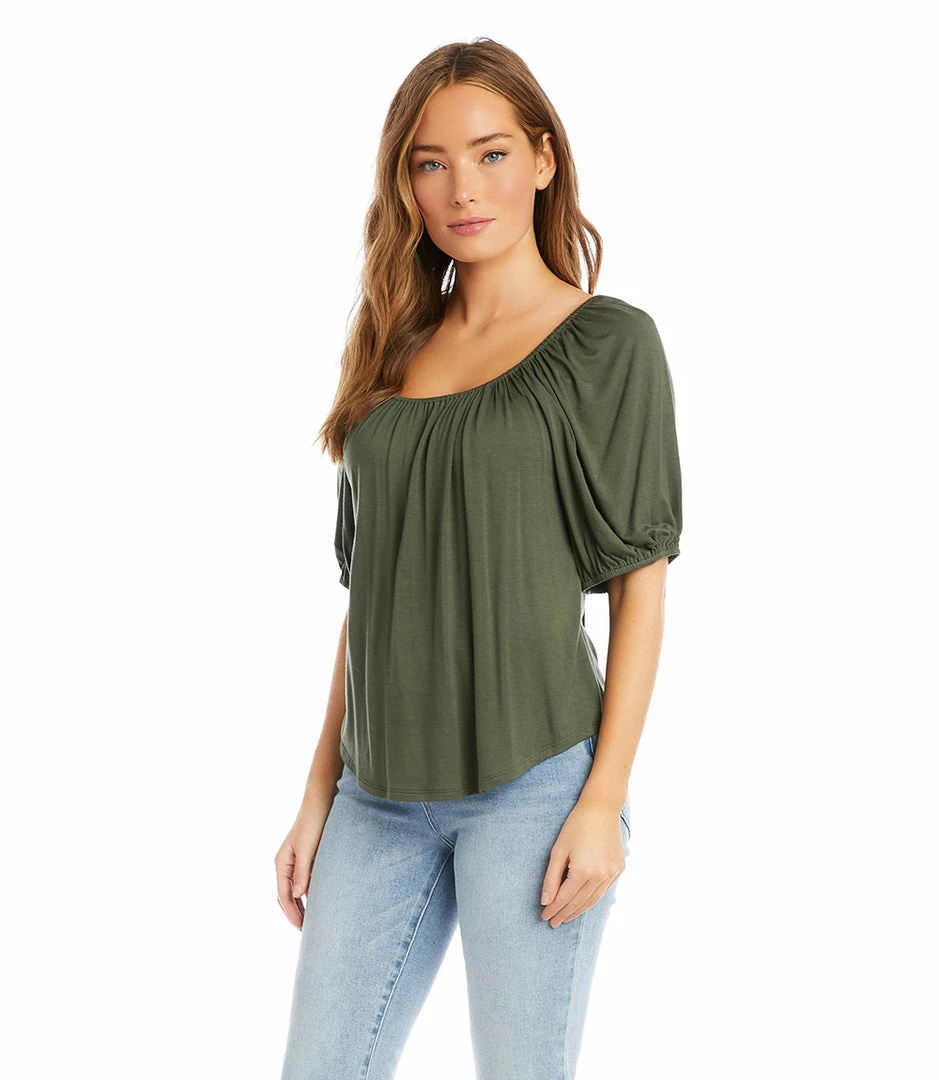 Designed with comfort in mind, this classic peasant top is cut from super-soft jersey-knit. Its statement-making puff sleeves and trend-right square neckline complete the romantic aesthetic.