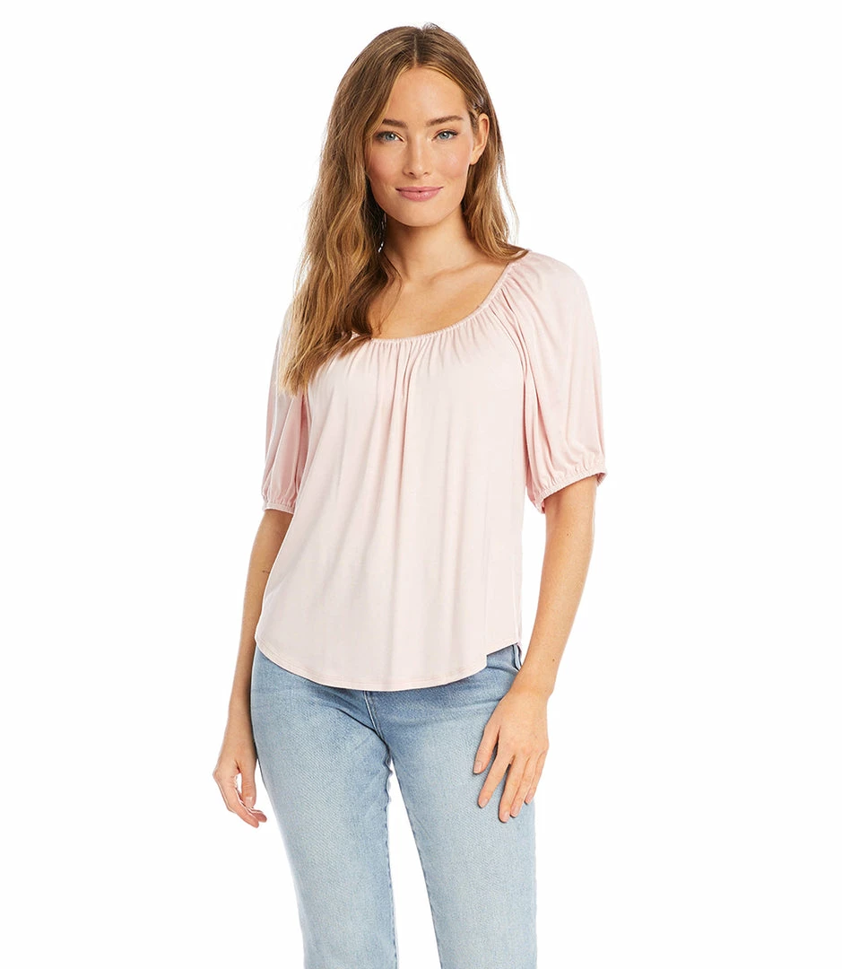 Designed with comfort in mind, this classic peasant top is cut from super-soft jersey-knit. Its statement-making puff sleeves and trend-right square neckline complete the romantic aesthetic.