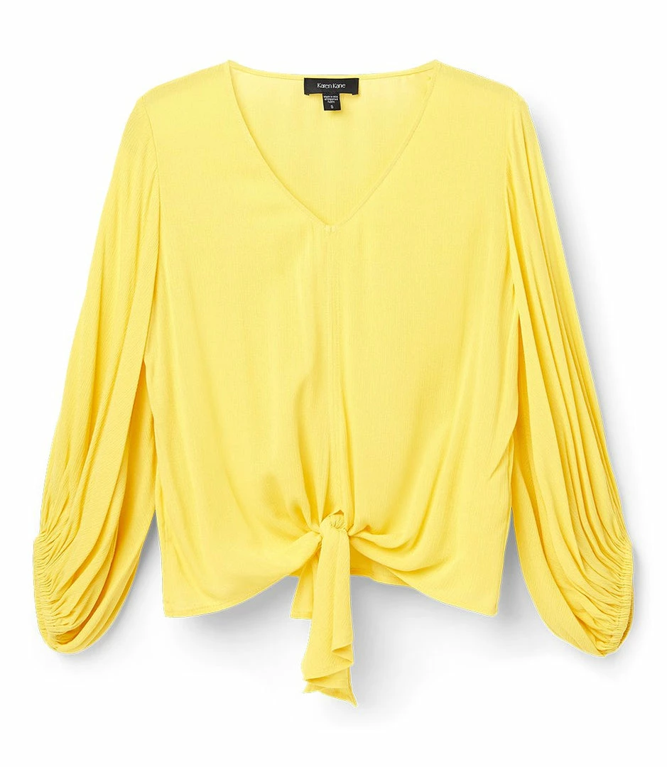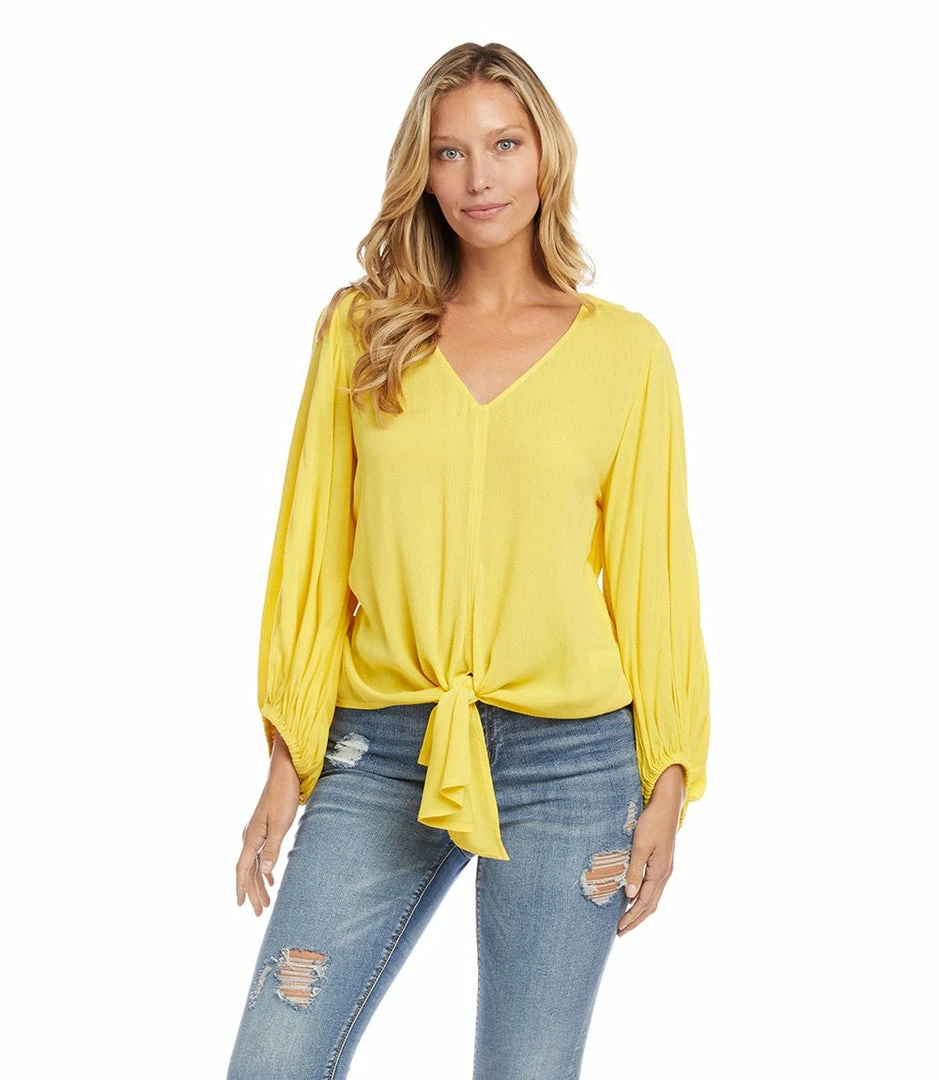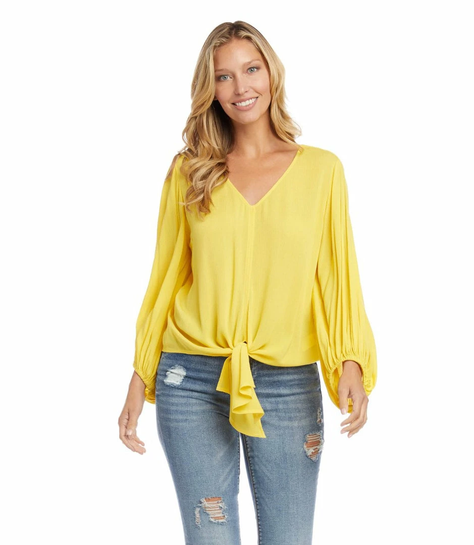Statement-making blouson sleeves define this breezy gauze top finished with a stylish tie-front.