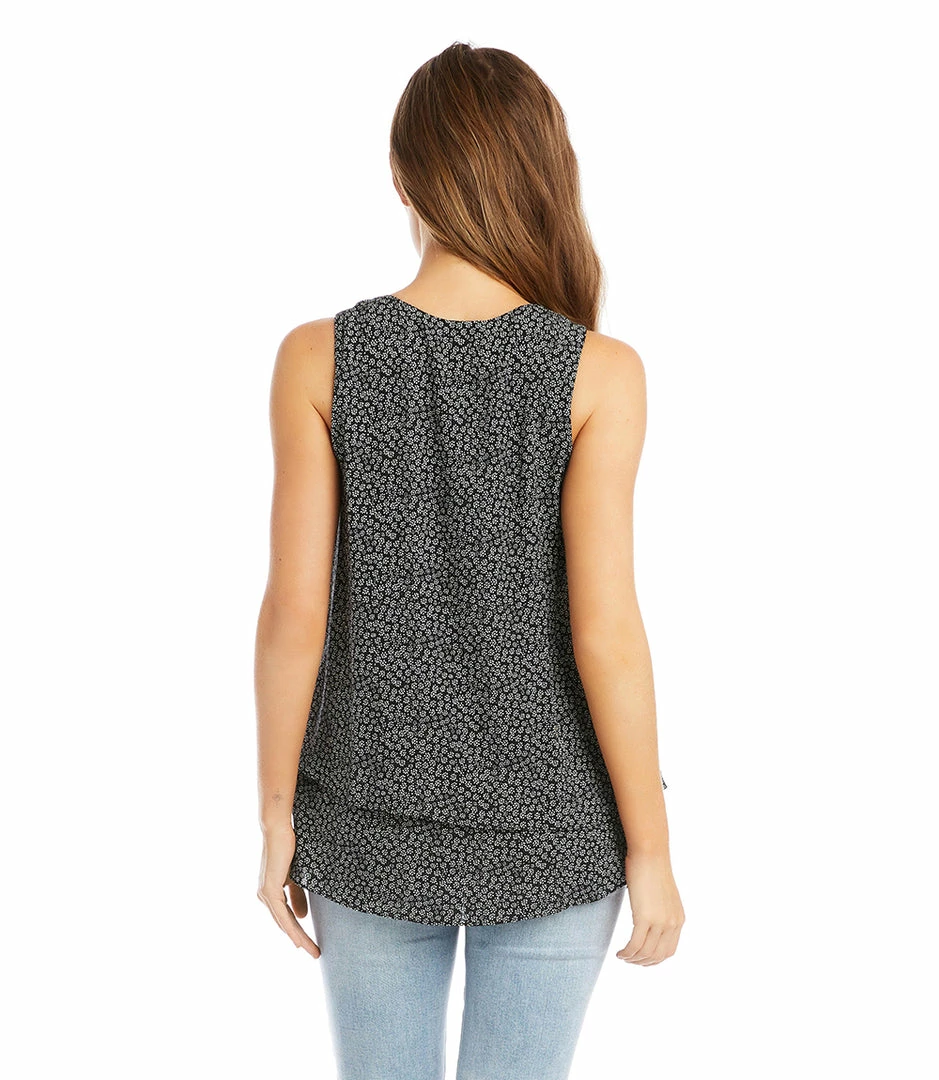A double layered front descends into an asymmetric hem bringing stylish dimension to a breezy gauze tank. Its ditsy floral print adds charm.
