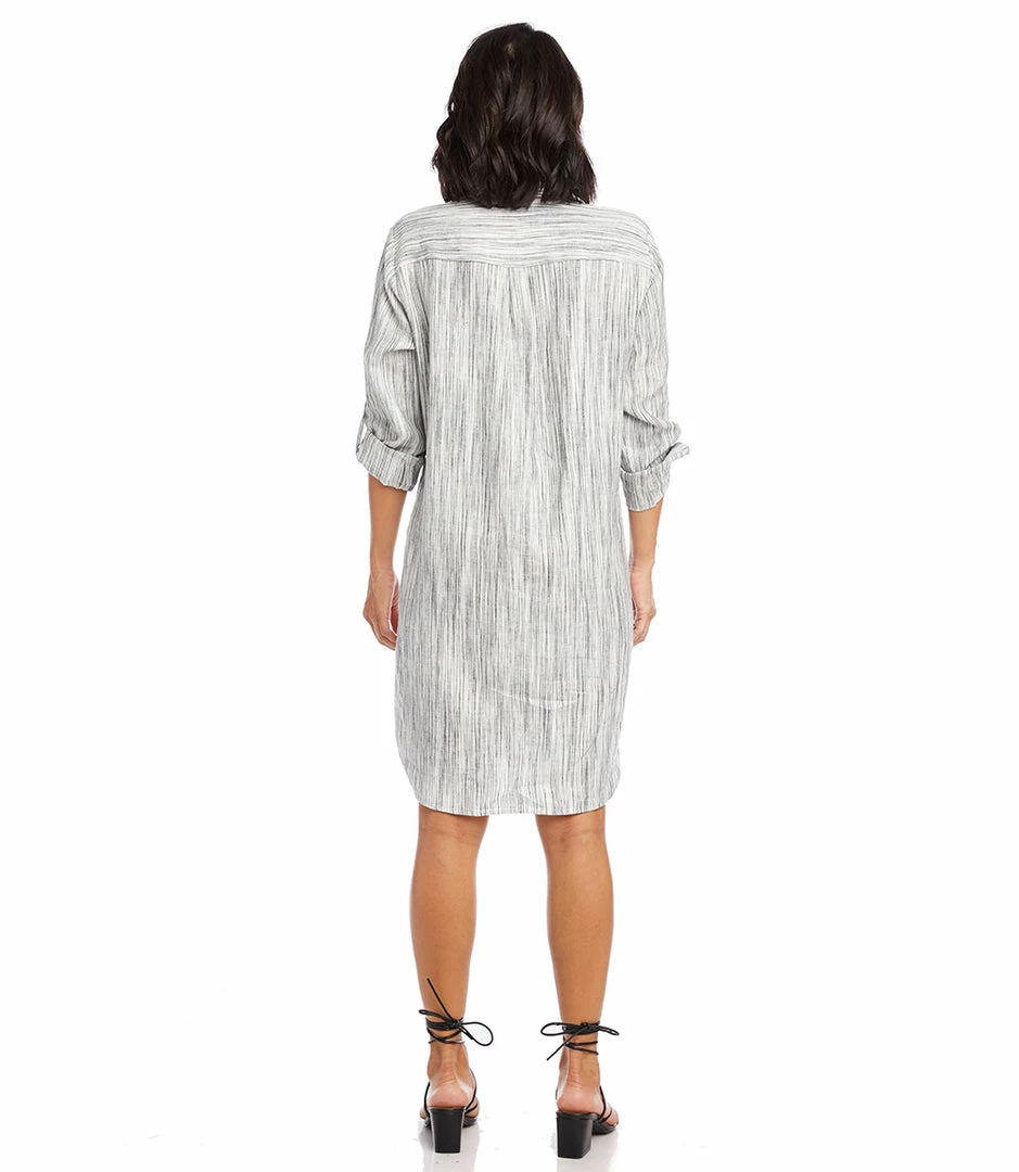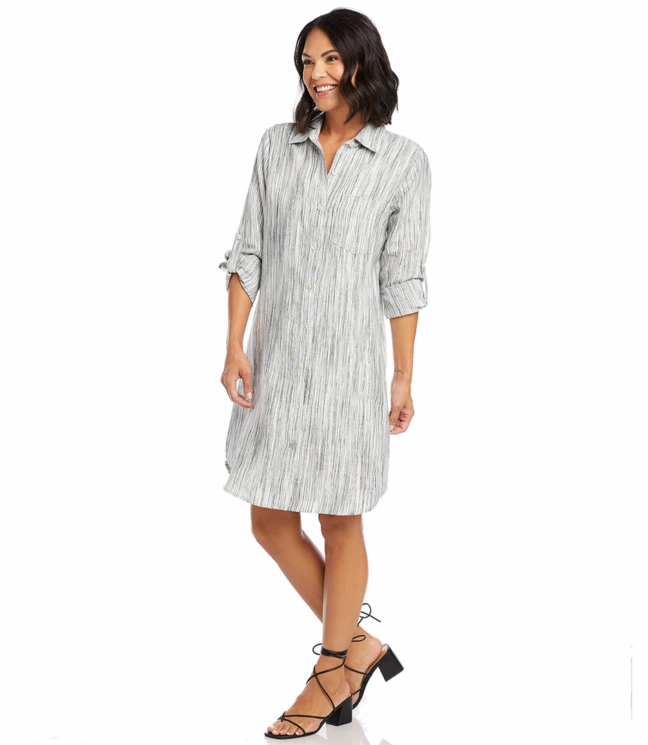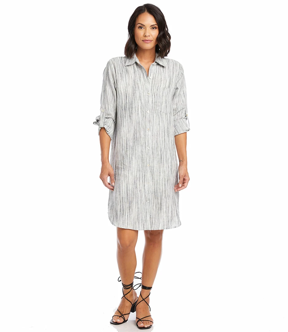 This casually refined dress features extended roll sleeves and a button-down silhouette.