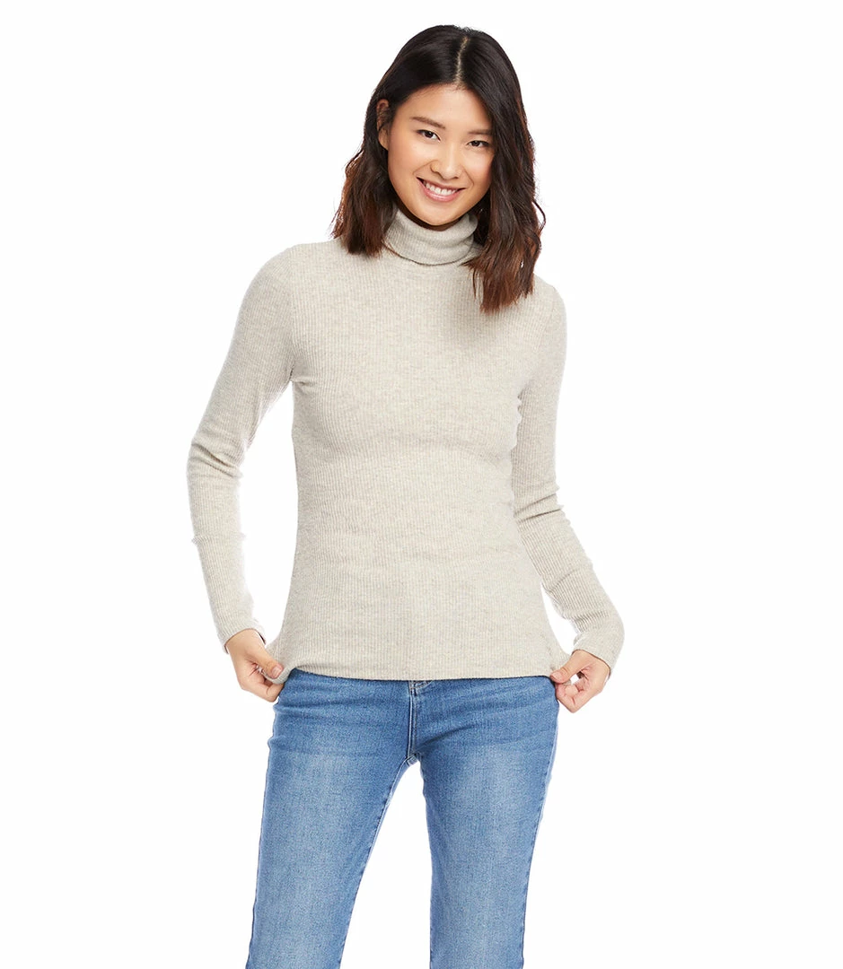 Ultra-soft brushed knit fabric shapes this turtleneck. Its ribbed knit construction and turtle neck makes this top perfect for cold-weather layering.