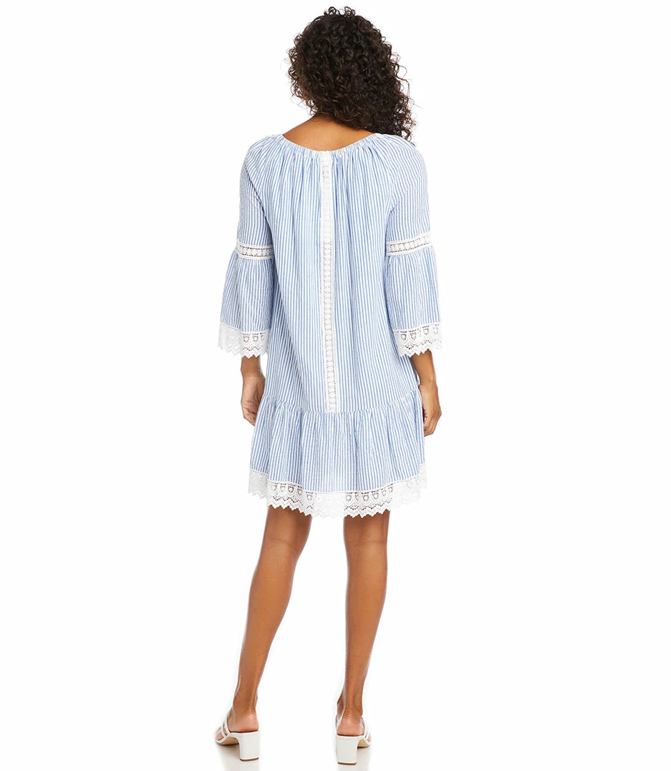 Designed to set a romantic tone, this billowy striped dress is detailed with delicate contrasting lace for an alluring finish.