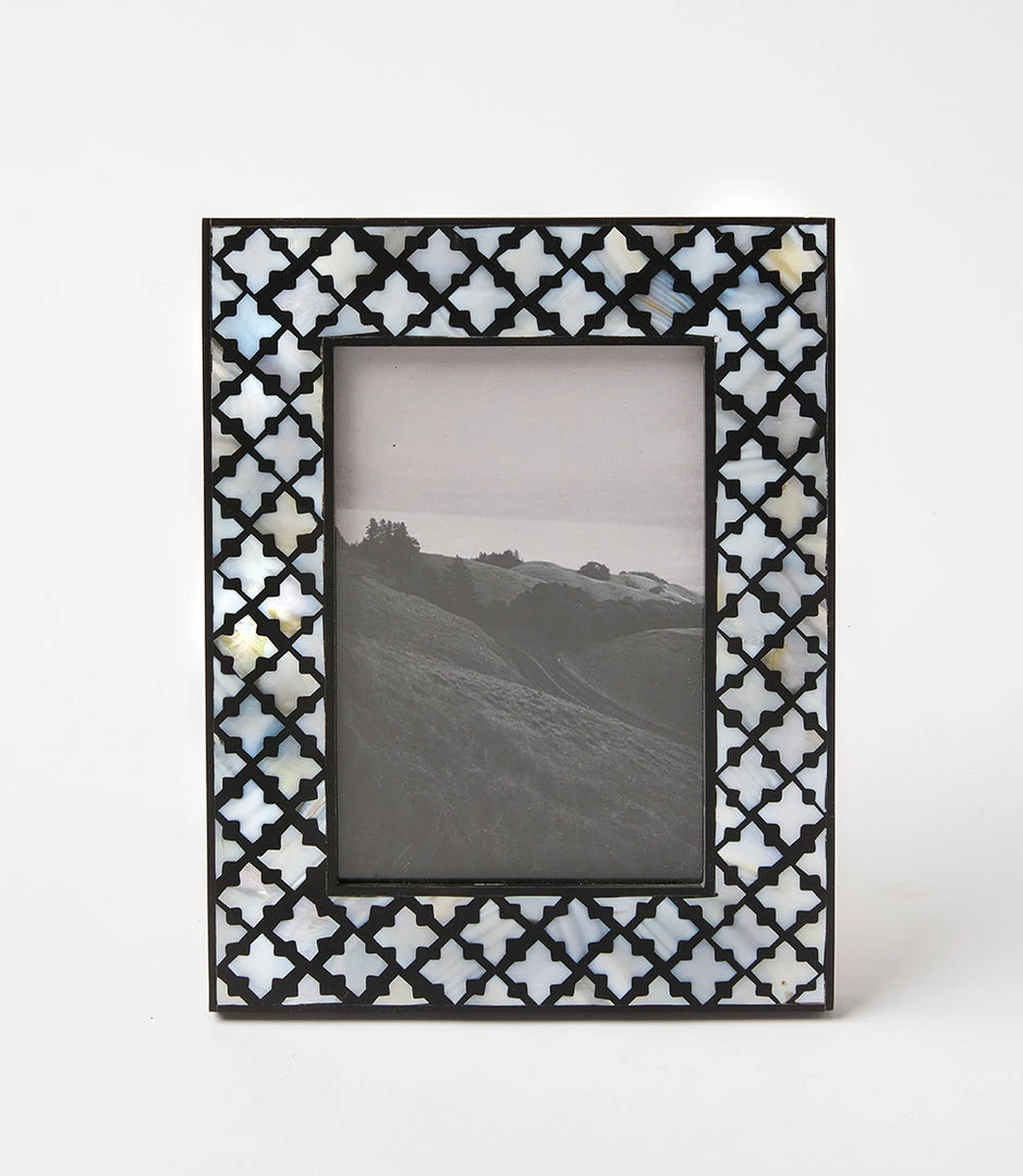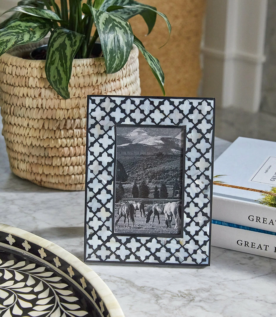 Handcrafted using a unique form of craftmanship, its mother of pearl floral pattern is inlayed into a resin base for a lux look. It’s finished with subtle texture and shine. Due to the natural characteristics of this item, each piece will have variances, no two are the same.