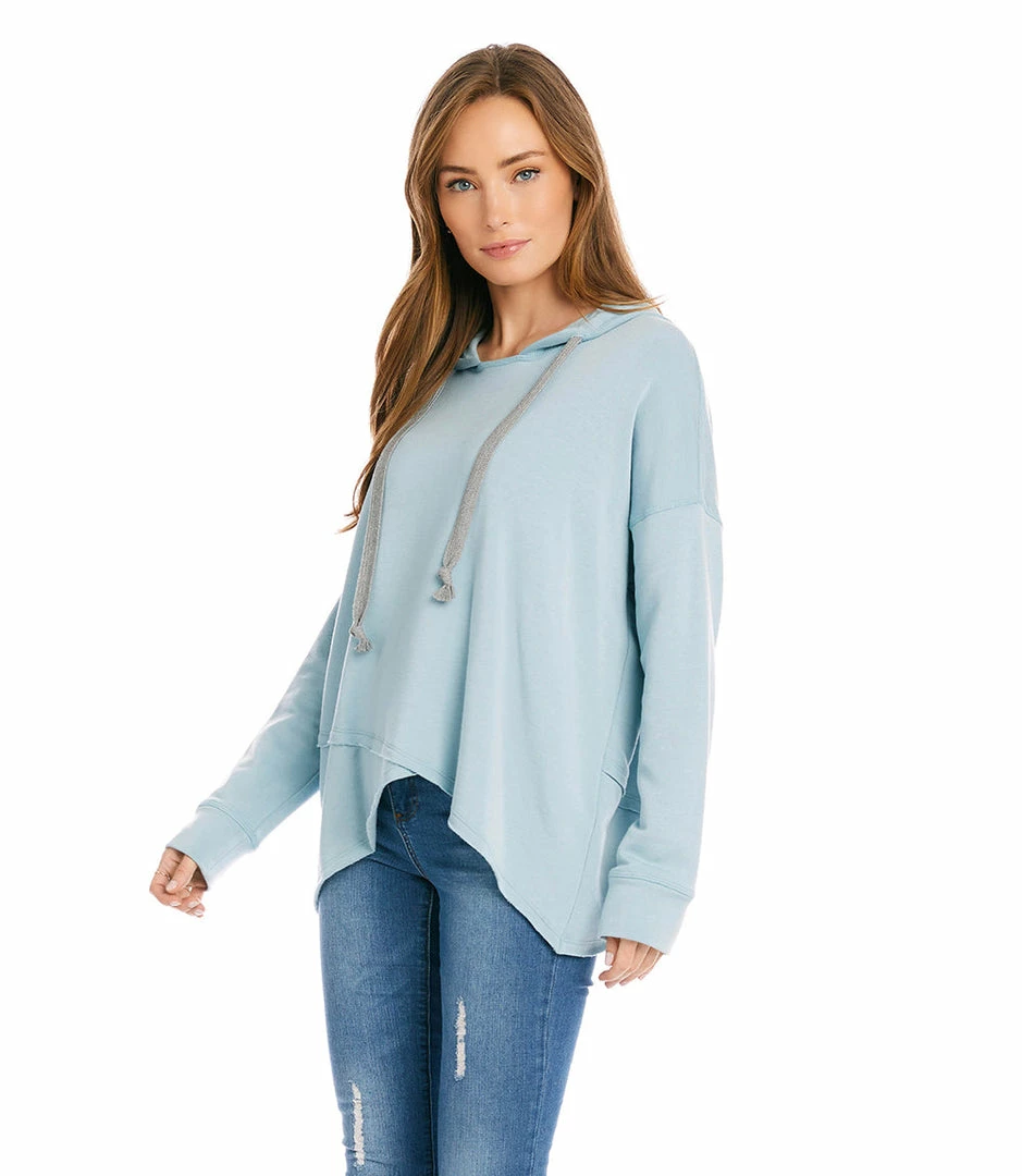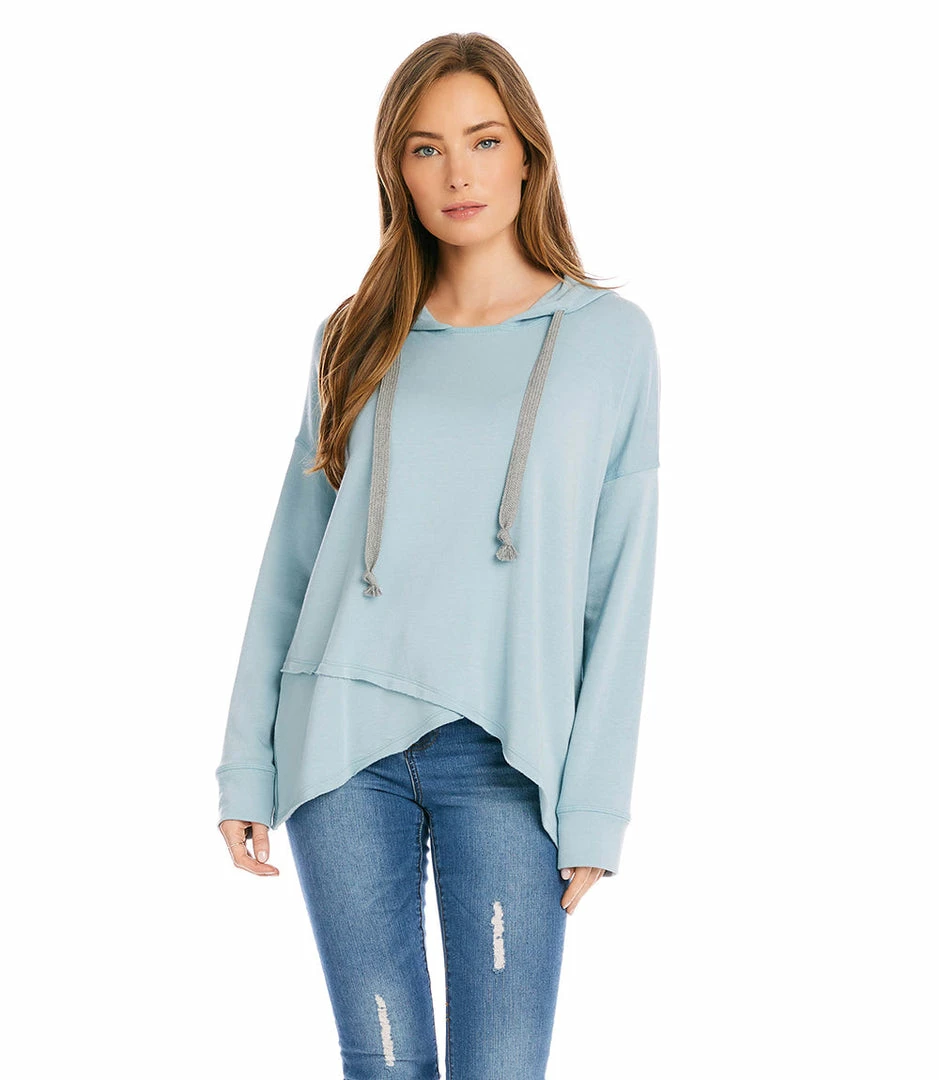 Update your athleisure wardrobe with this ultra-soft fleece knit hoodie. Its asymmetric raw edge hem enhances the contemporary feel.
