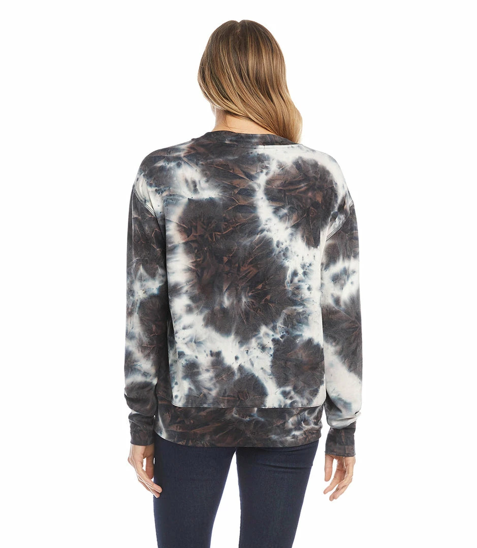 Abstract beauty is found in this incredibly soft top featuring a tie-dye pattern. Its deep v-neckline and relaxed silhouette complete the bohemian look and feel.