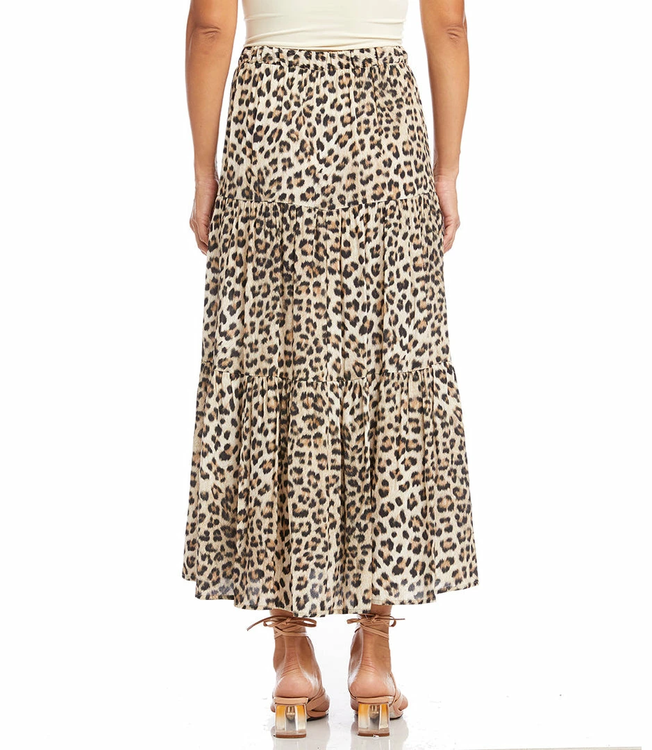 Take a walk on the wild side in this free-flowing skirt featuring a sophisticated leopard print and an adjustable elastic waist. It also features handy side pockets.