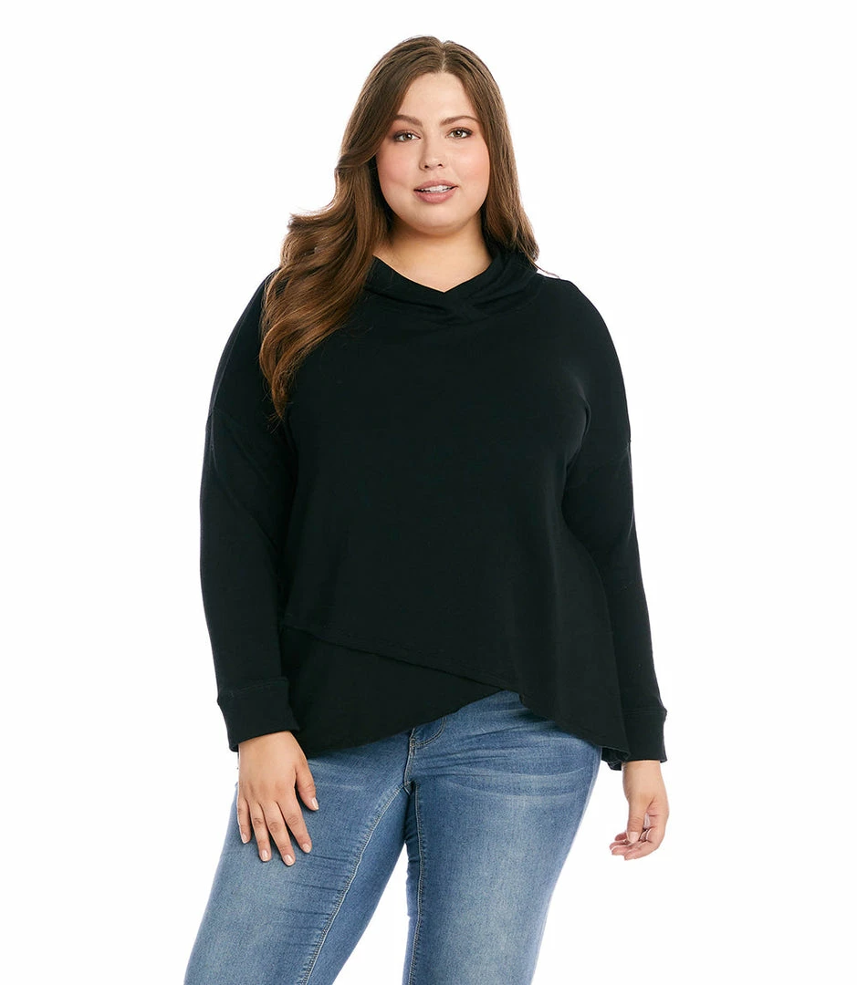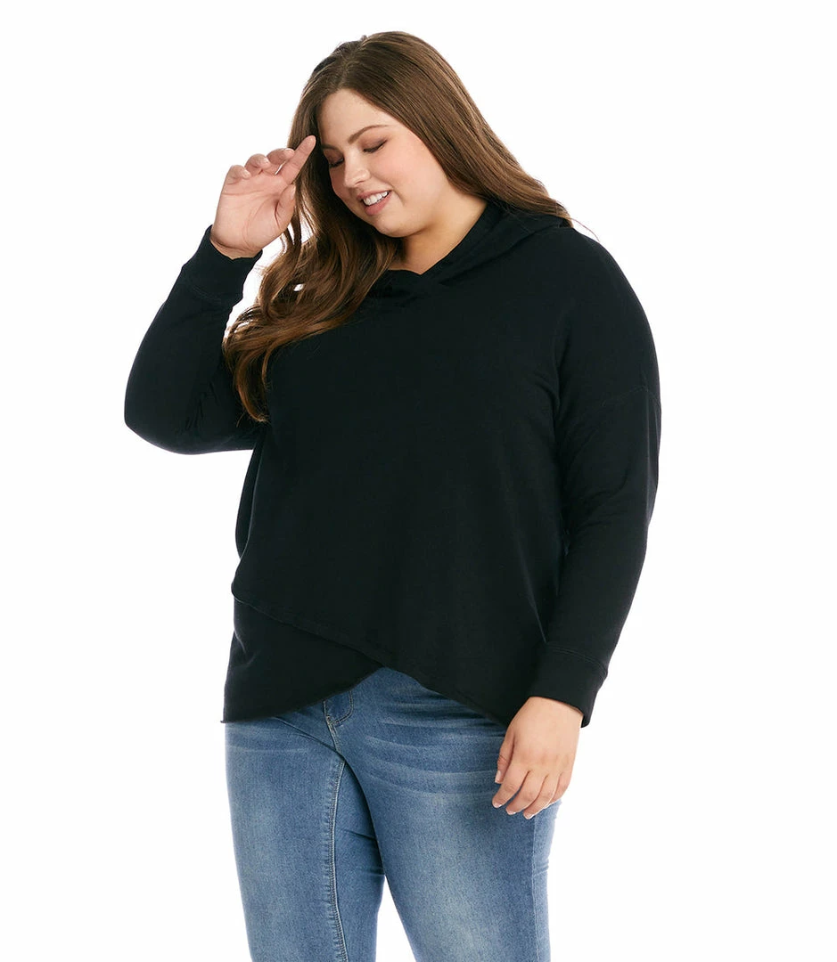 Update your athleisure wardrobe with this ultra-soft fleece knit hoodie. Its asymmetric raw edge hem enhances the contemporary feel.