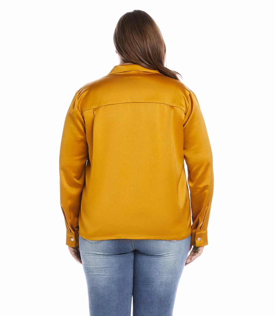 Cut from luxurious heavy satin, this top is detailed with an alluring draped neckline. The perfect layering piece – soft, shimmering, and easy to dress up or down.