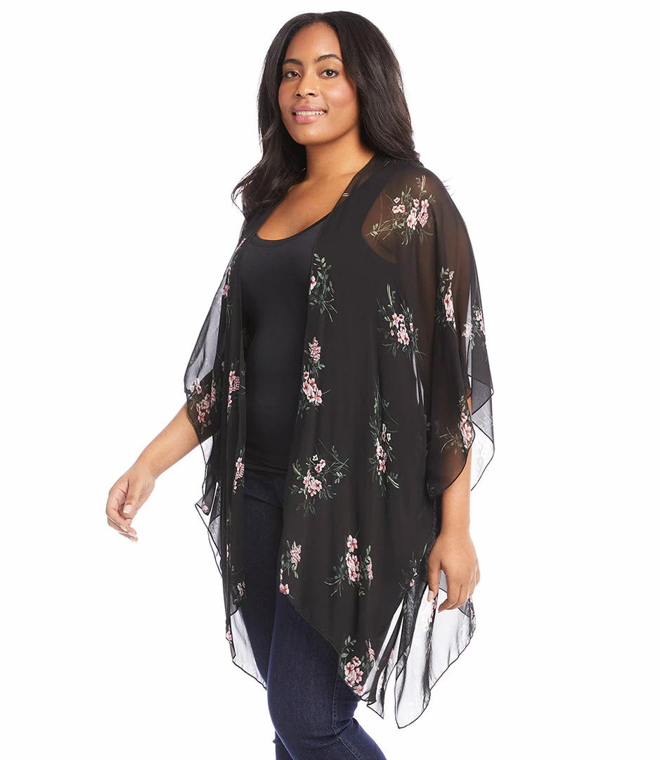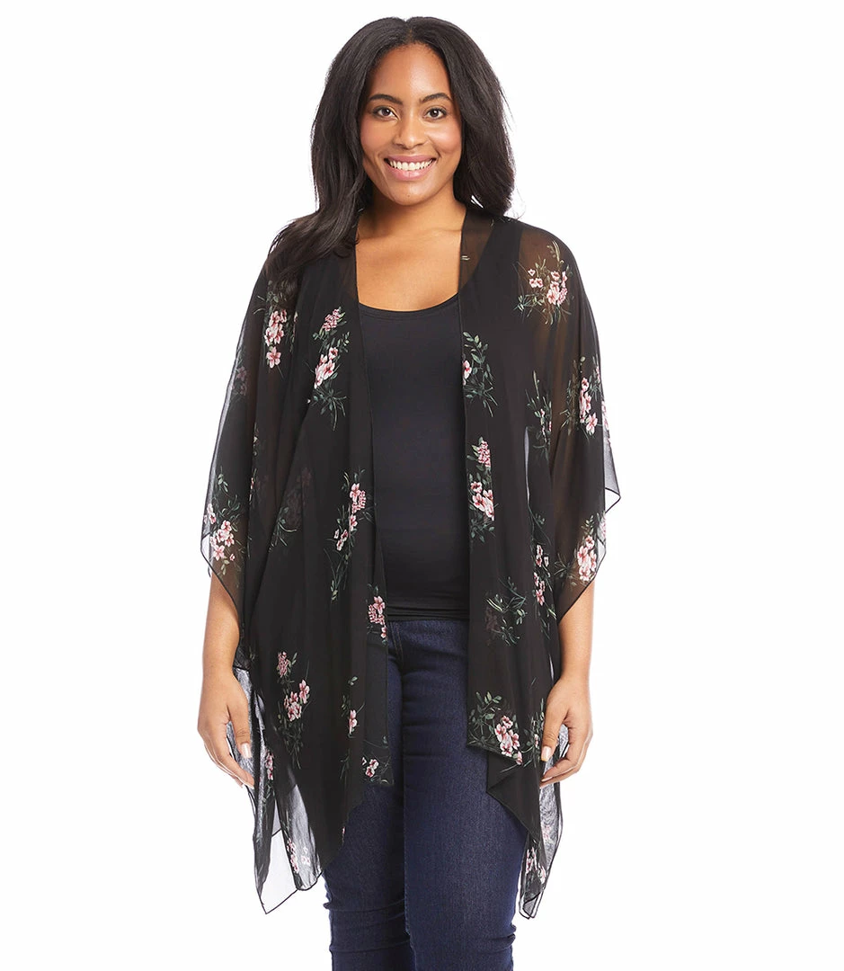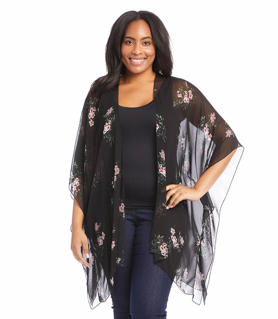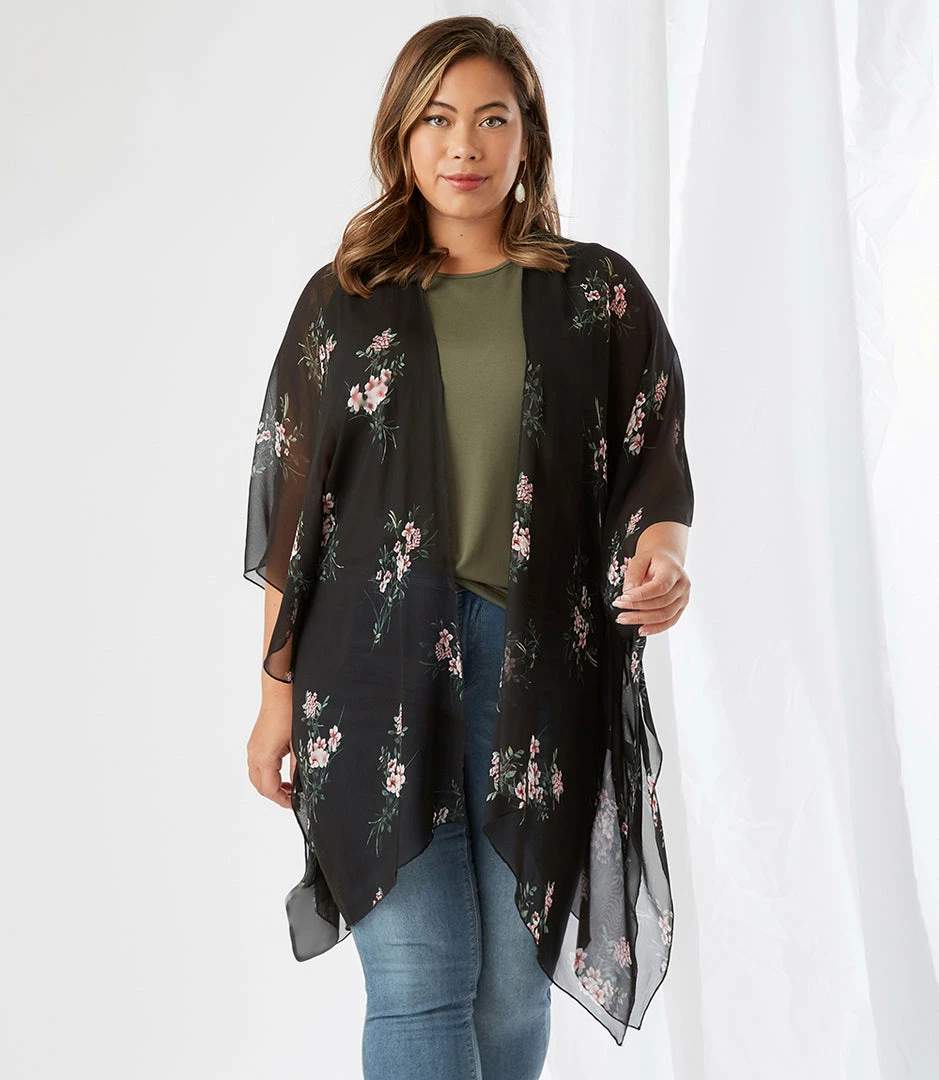 Designed to set a romantic tone, this lightweight kimono in a romantic floral print offers soft movement with its draped silhouette. Complete your layered look with this open front jacket for lightweight, stylish coverage.