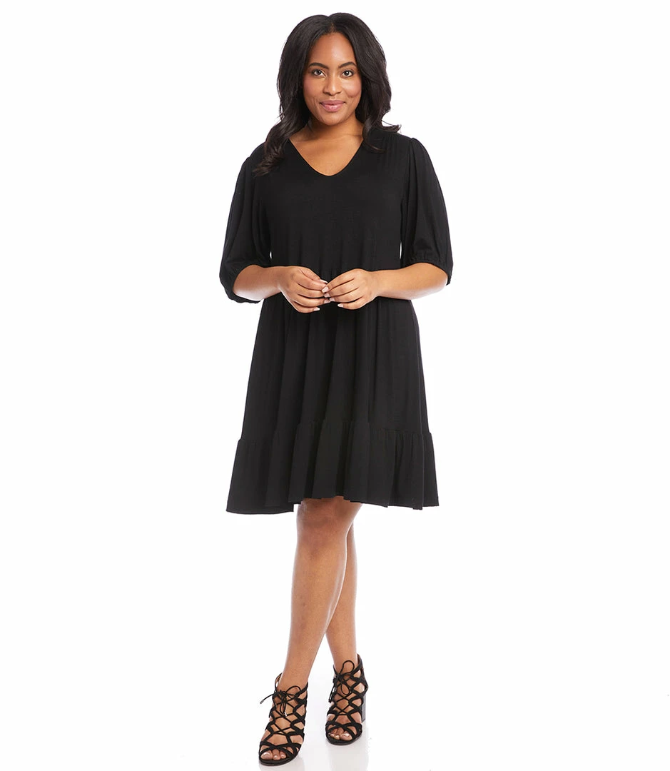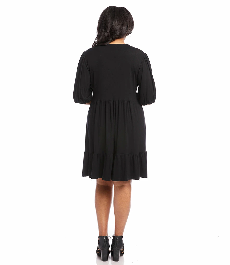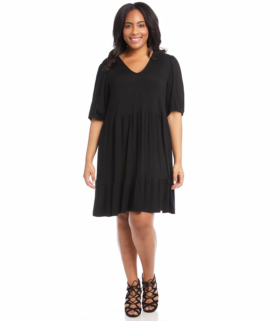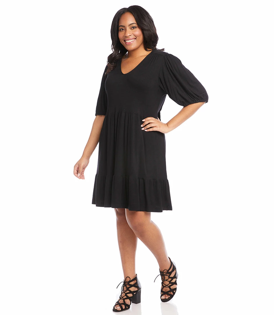A figure-flattering dress that was designed to be an effortless choice for everyday wear. Puff sleeves and a tiered hem complete the look of this feminine and casual style.