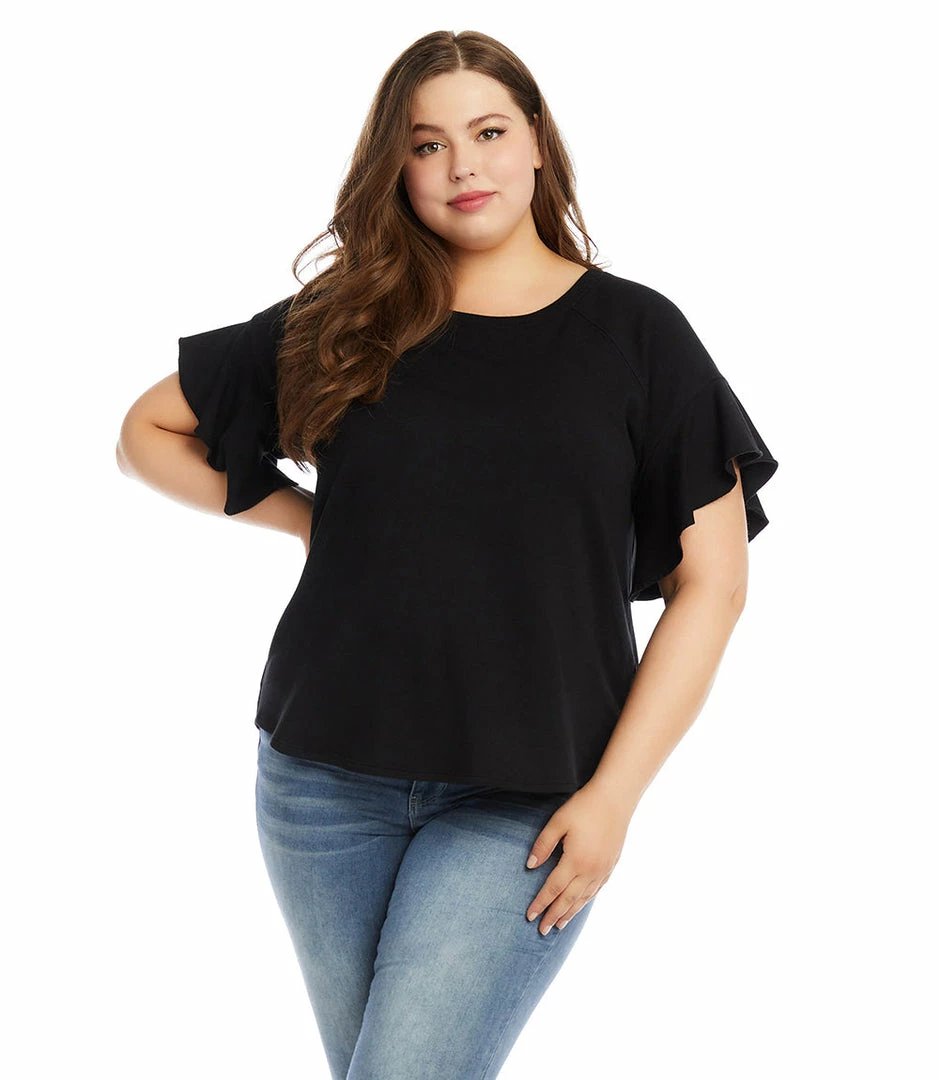 Update your athleisure wardrobe with this ultra-soft fleece top. It’s detailed with flouncy ruffle sleeves for additional charm.