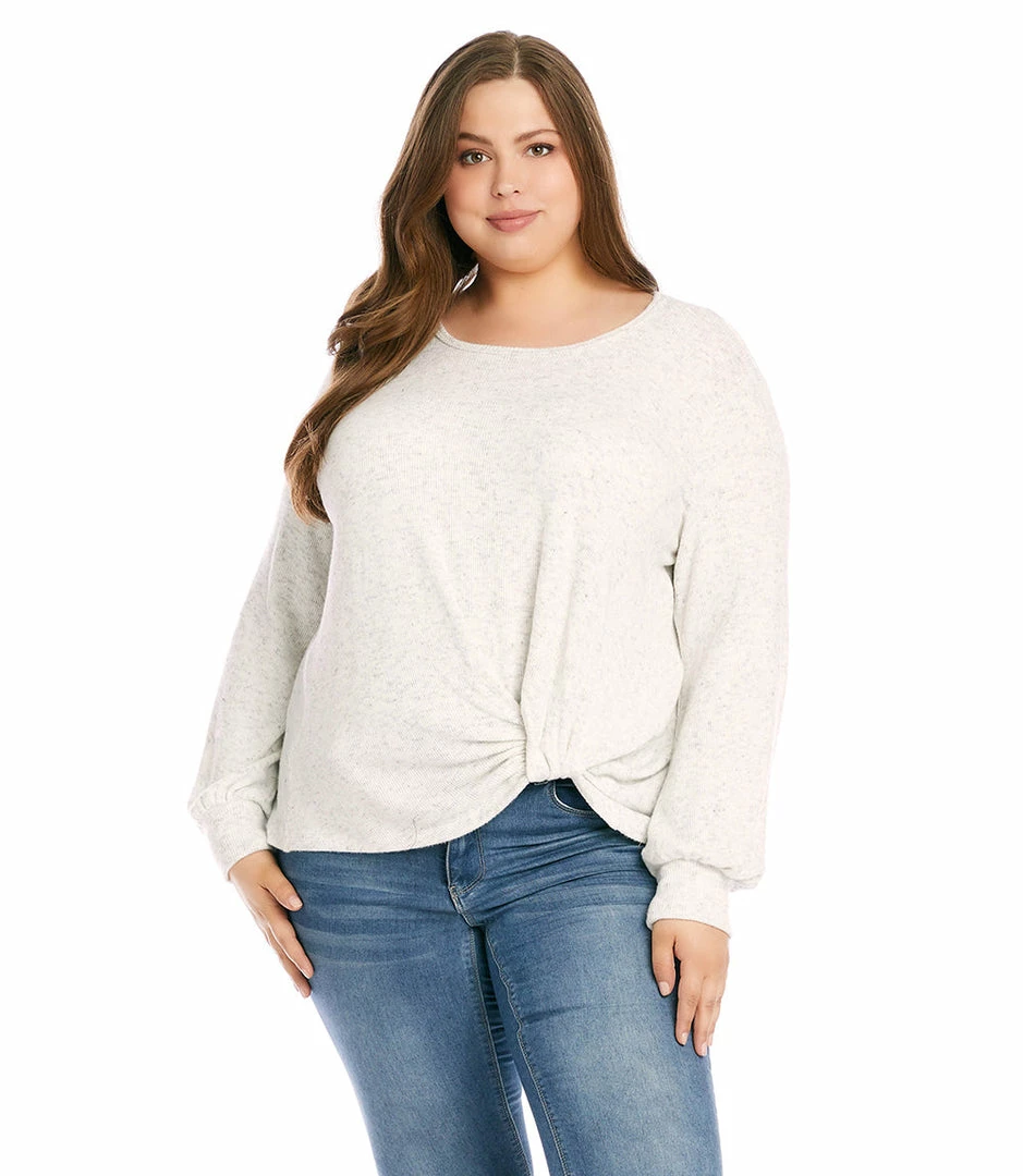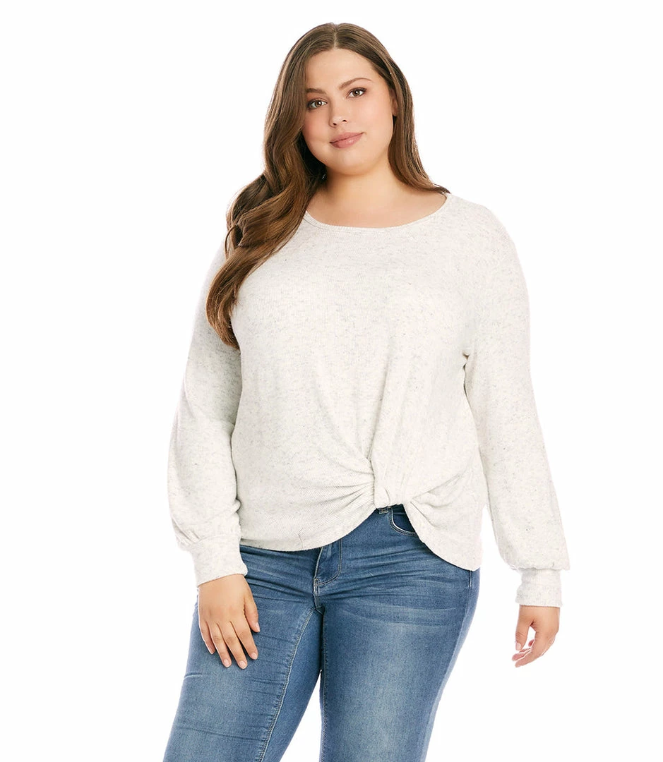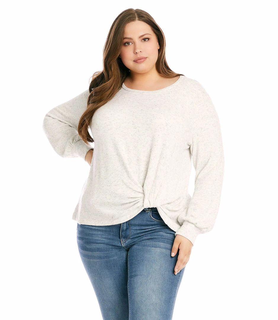 Cut from buttery soft rib knit, this timeless top is refreshed with a stylish pick-up hem. It’s finished with billowy blouson sleeves.