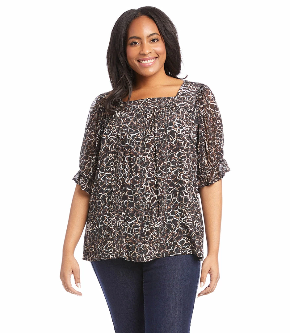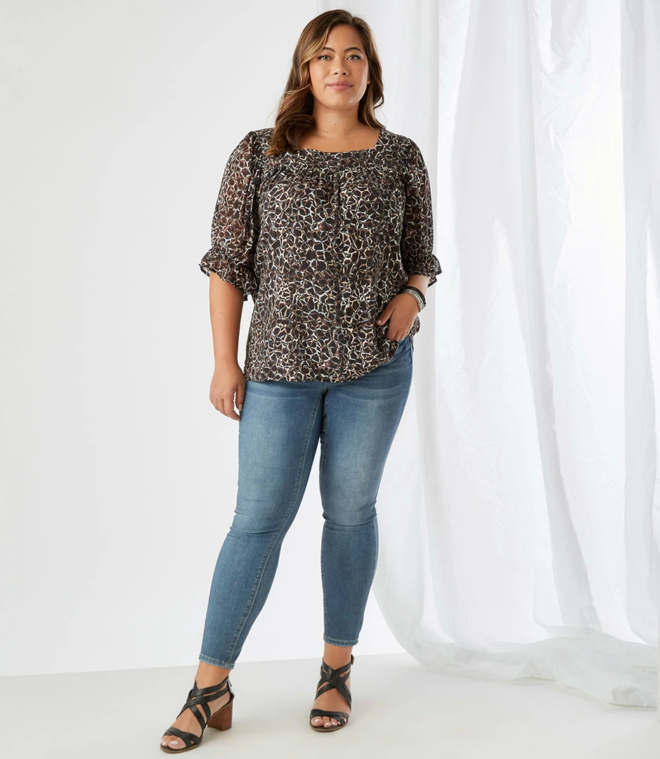 This charming top features a trend-right square neckline and flouncy ruffle sleeves. The perfect partner to all your denim, or any pair of black or white pants, this feminine style is the ultimate day-to-night piece.