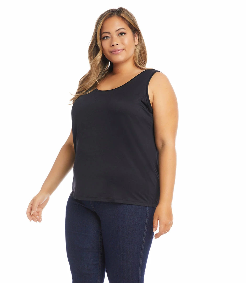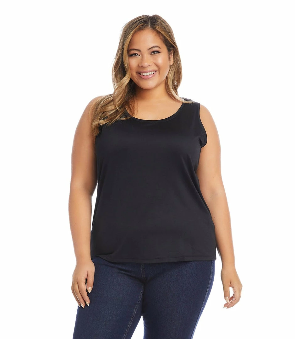 Sophisticated enough for work, yet relaxed enough for weekends, the Karen Kane super soft tank is a classic that can be layered underneath your outfit each and every day. The nylon/spandex blend ensures that this tank will be just as long-lasting as it is comfortable.