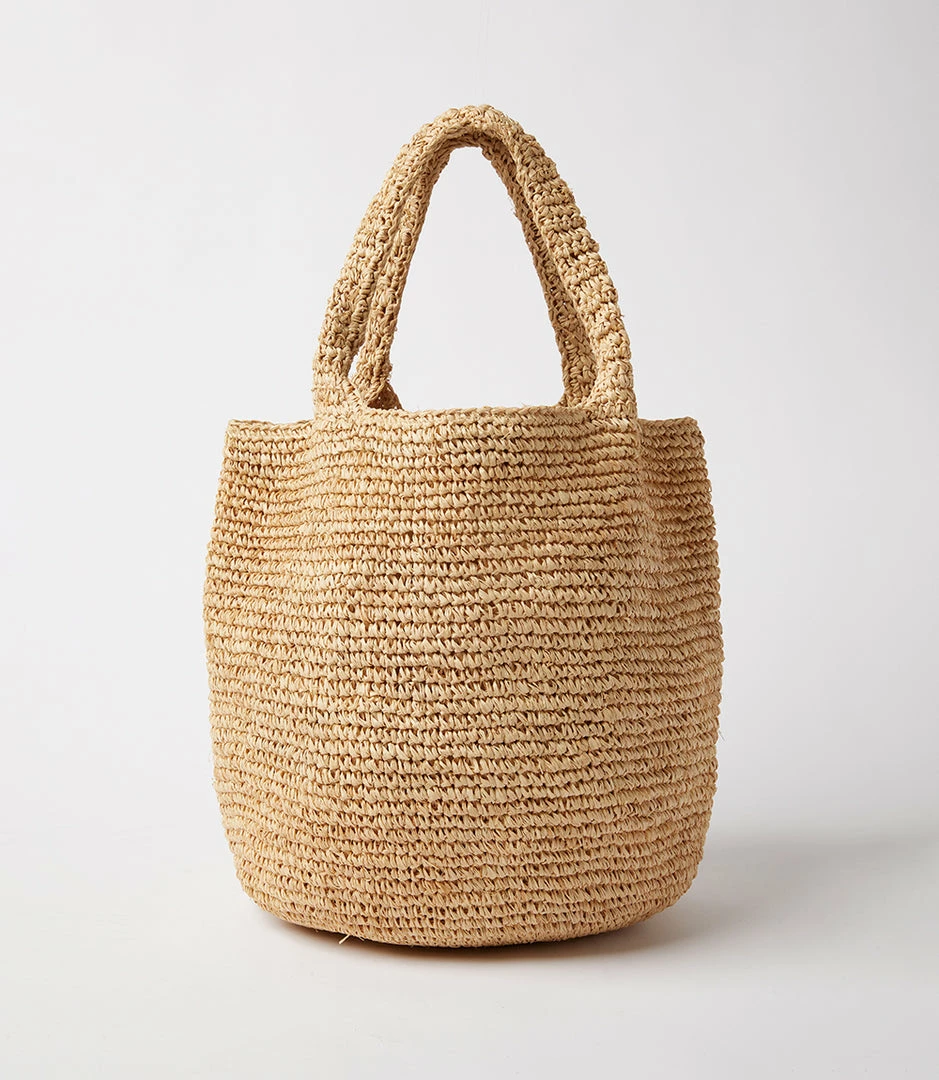 Complete your beach look with this structured raffia tote topped with double handles. Its roomy silhouette makes this bag perfect for packing beach essentials.