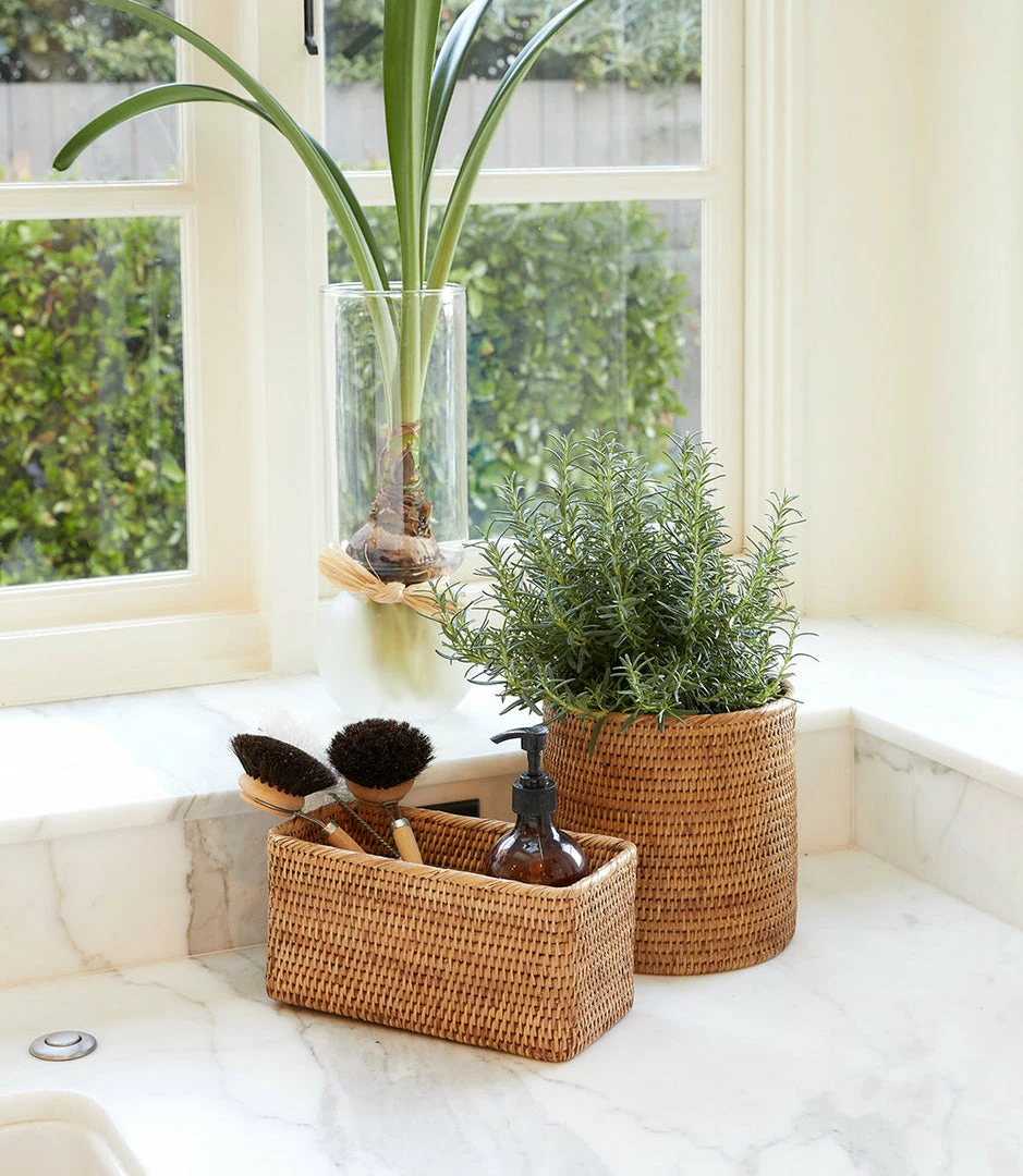 Add a touch of warmth and texture to your space with this handwoven basket constructed from Burmese rattan. Its durable construction, natural elements, and tight weave make this basket perfect for outdoor occasions.