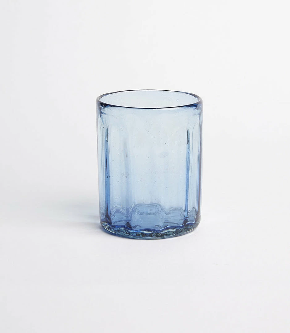 Made from recycled glass, this stunning drinking glass will add a pop of color to your tablespace. Ethically made in Mexico by artisans using a millenary hand-blown glass technique to create a unique ridged look. Due to the natural characteristics of this item, each piece will have variances, no two are the same.