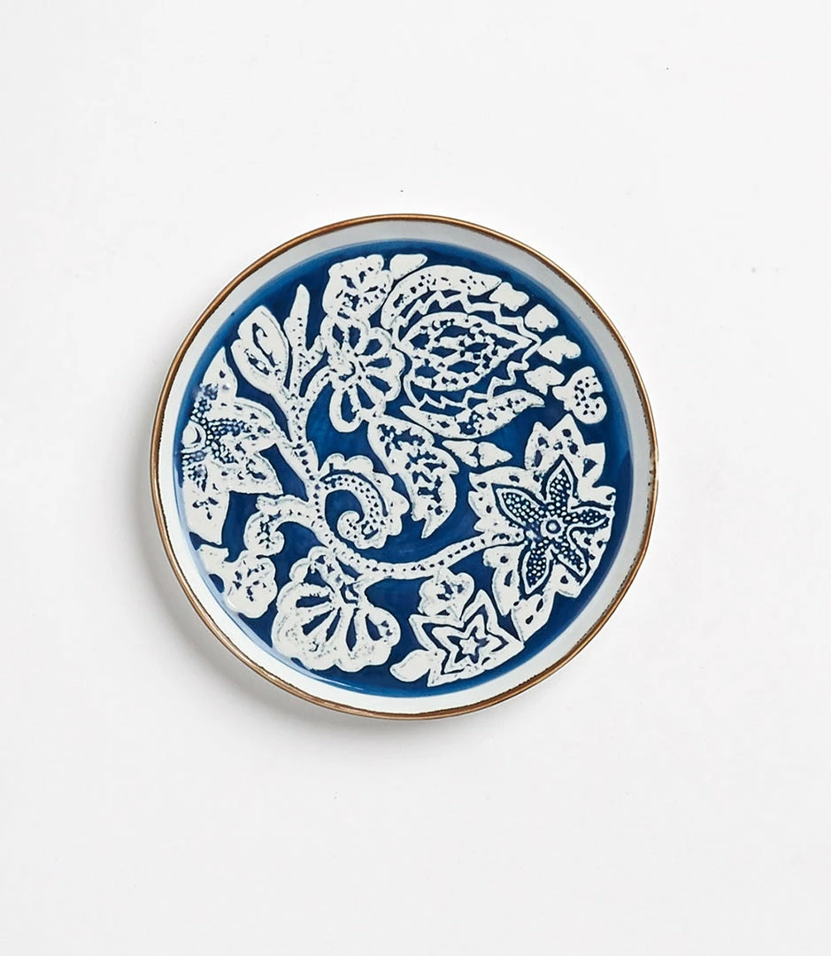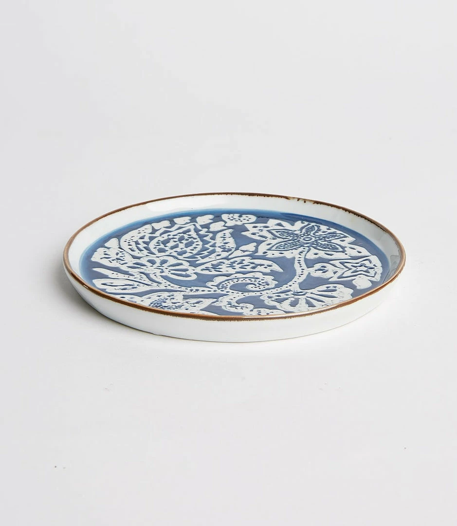 Decorate your tablescape with these richly detailed stoneware glazed with a hand finished floral design.