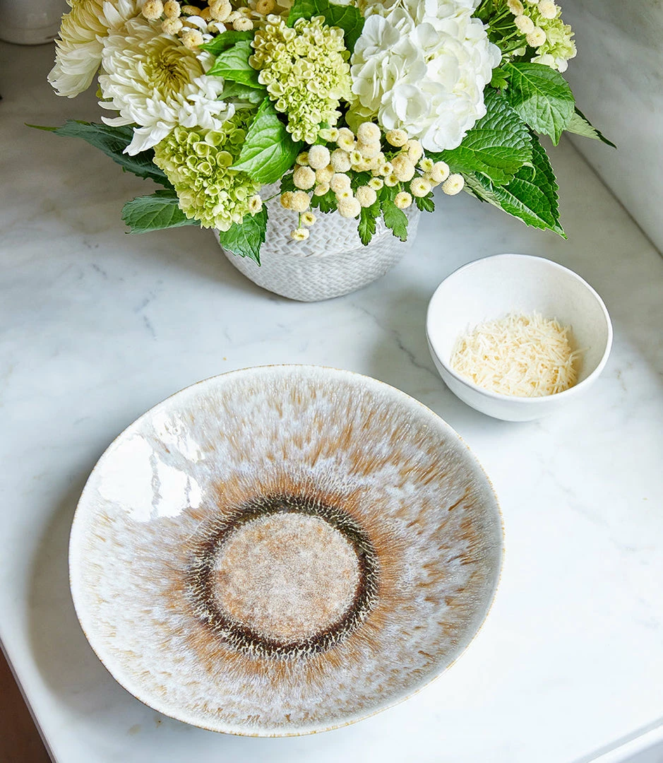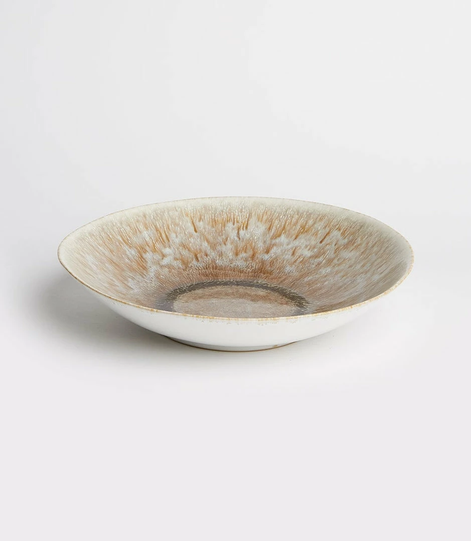 Crystal-toned reactive glaze creates a stunning ombre look on this serving bowl. This plate will add a beautiful pop of color to your tablespace. Due to the natural characteristics of this item, each piece will have variances, no two are the same.