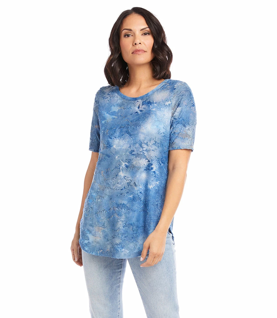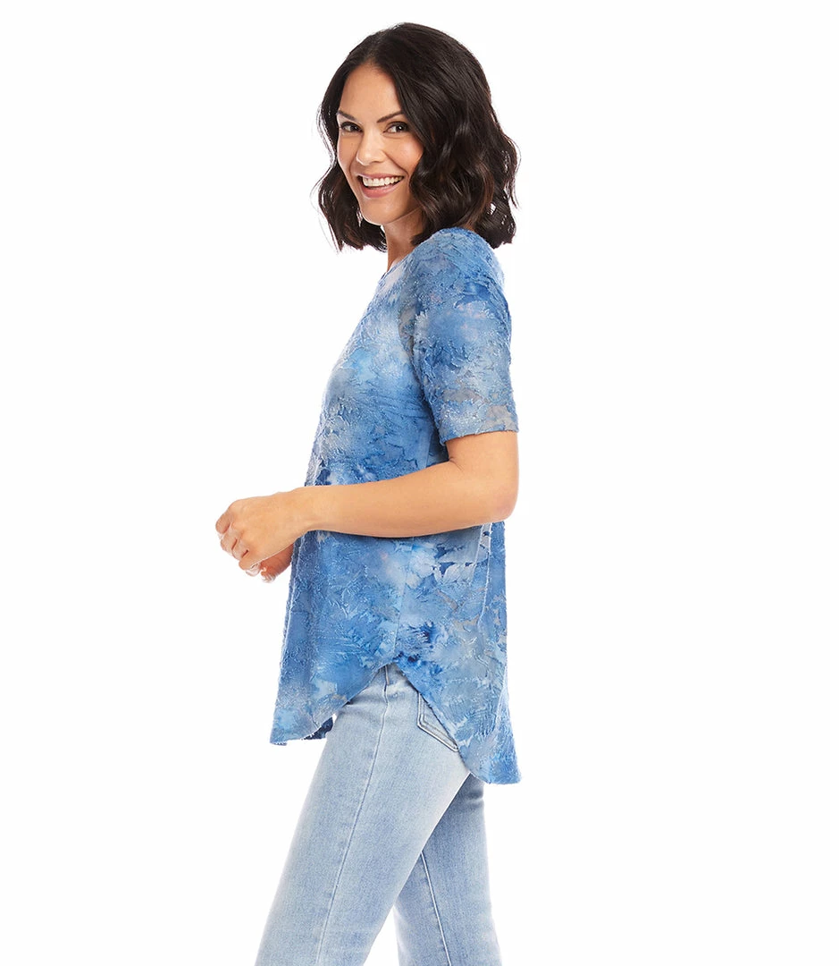 Textural beauty is found in this jacquard top covered in an alluring leaf tie-dye design. It pairs perfectly with your favorite denim. It