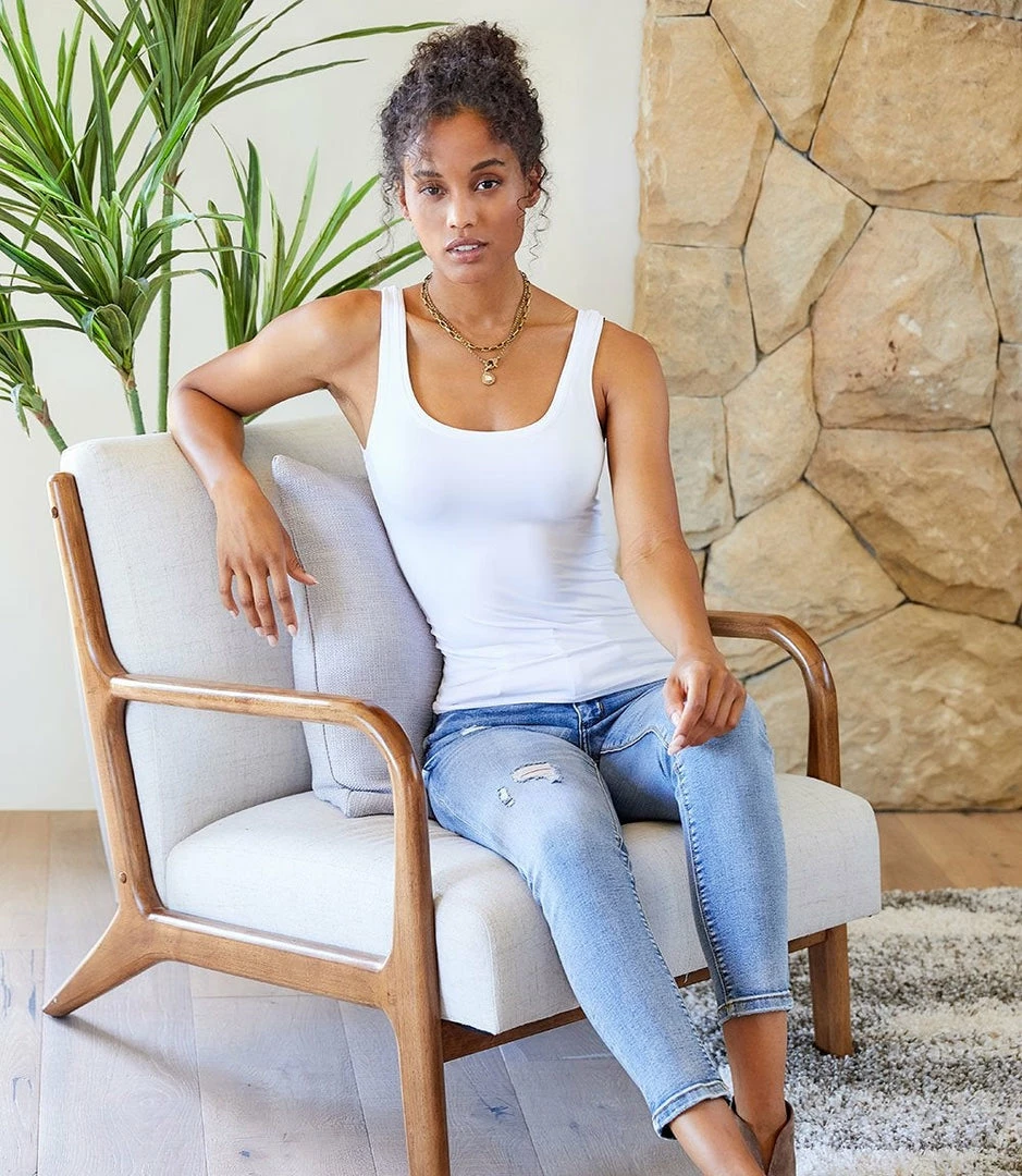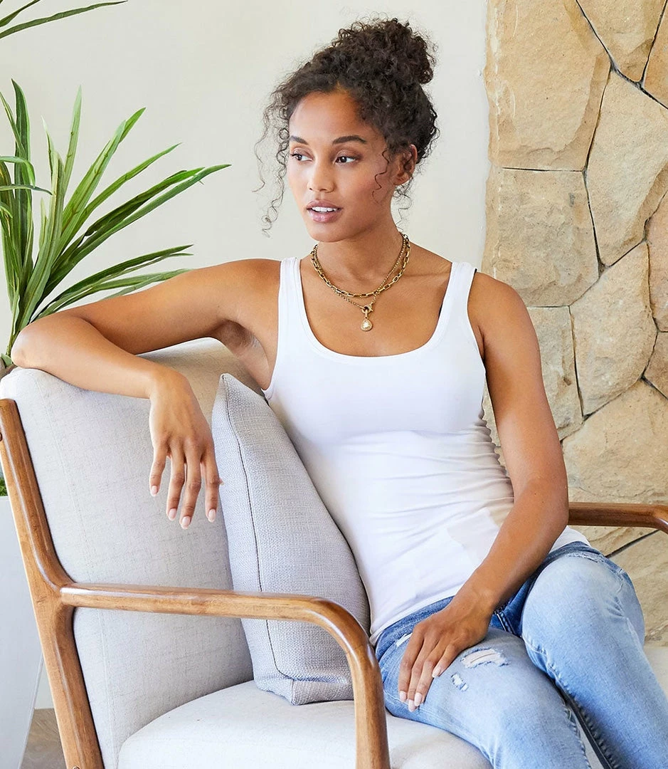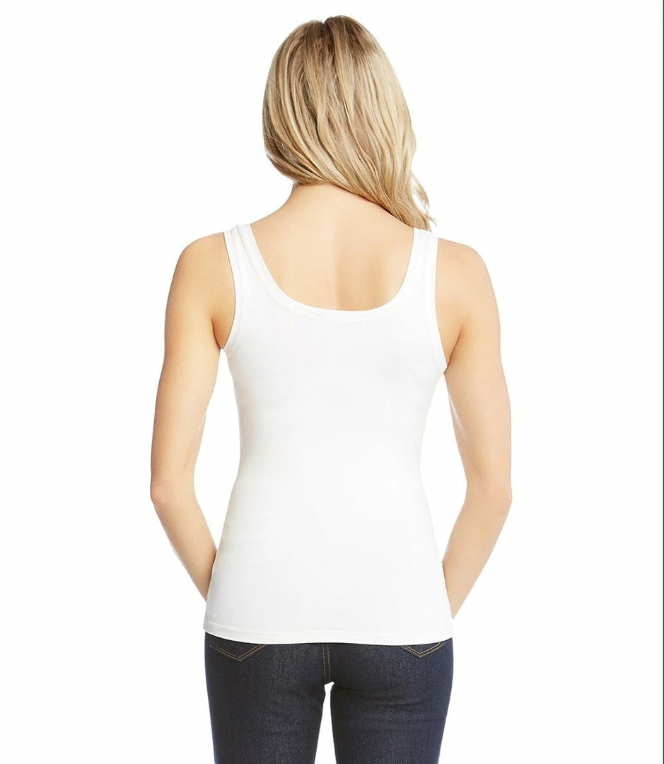 Sophisticated enough for work, yet relaxed enough for weekends, the Karen Kane super soft tank is a classic that can be layered underneath your outfit each and every day. The nylon/spandex blend ensures that this tank will be just as long-lasting as it is comfortable.