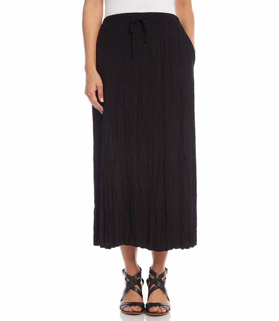 Crinkled gauze fabric shapes a free-flowing silhouette of a essential midi skirt. Its tiered hem enhances the bohemian charm.