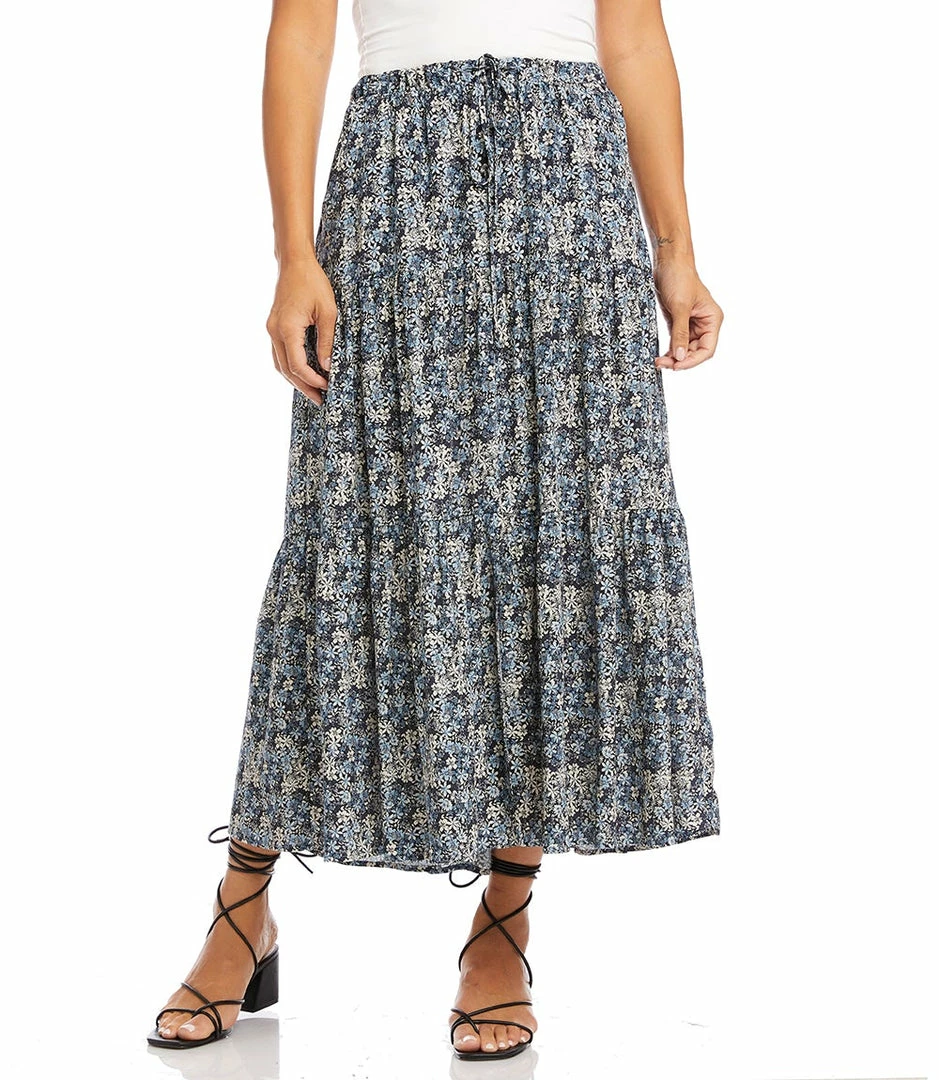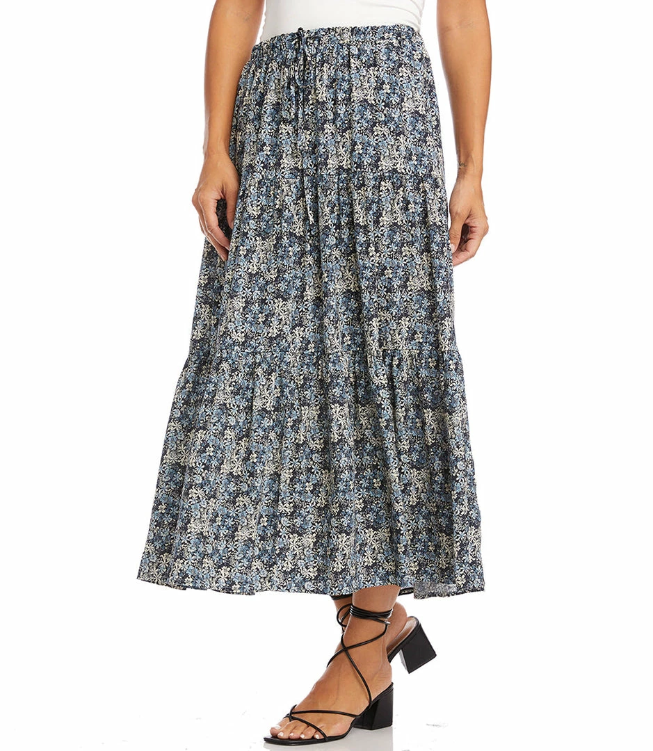 Breezy crepe fabric shapes a free-flowing silhouette of a essential midi skirt patterned with a beautiful garden floral print. Its tiered hem enhances the bohemian charm.