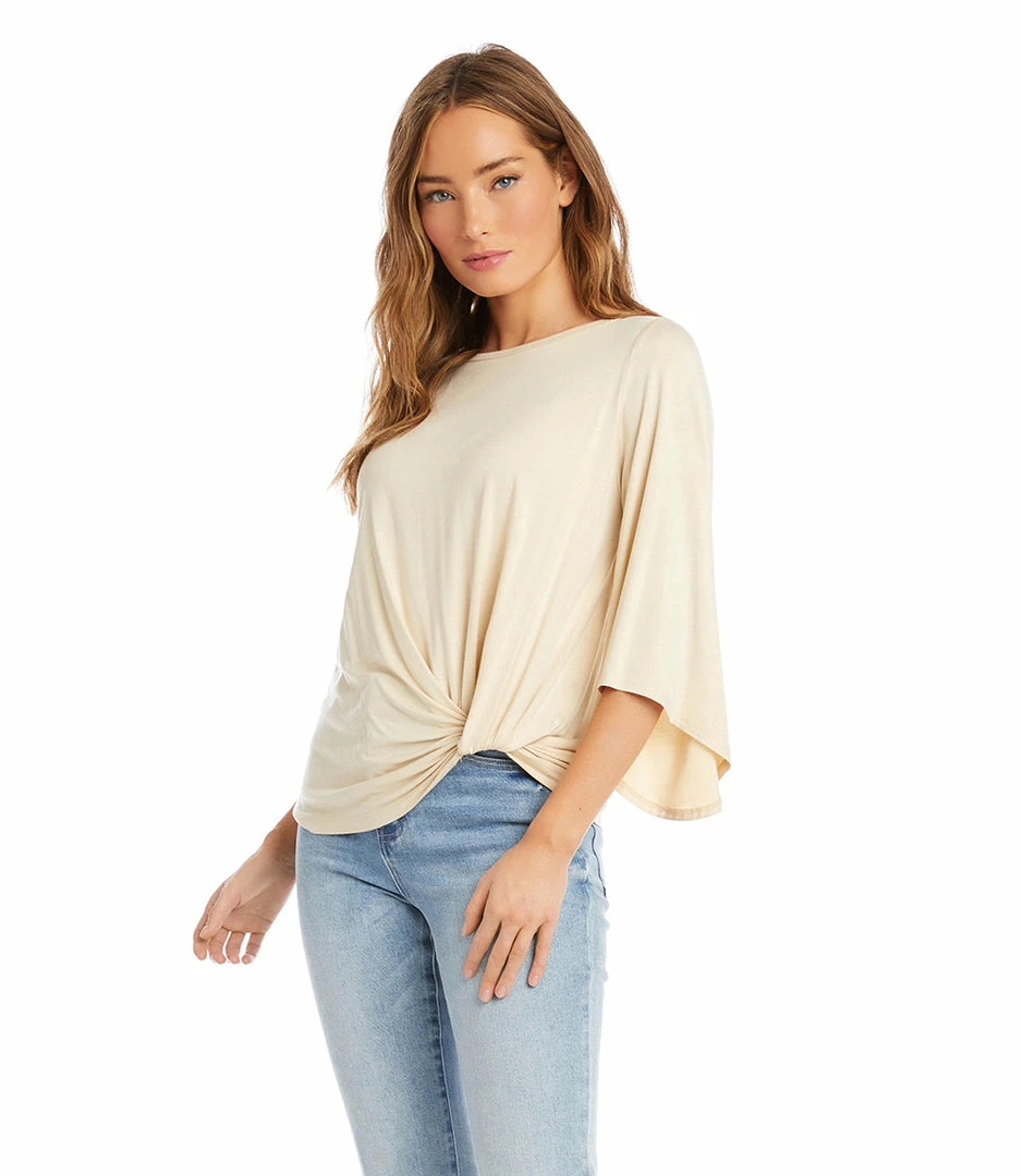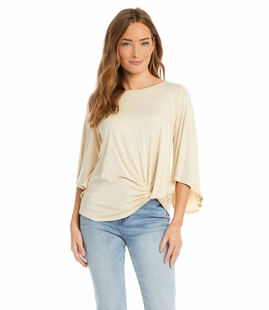 Flouncy flare sleeves add soft movement to this jersey-knit top detailed with a stylish pick-up hem. This top pairs perfectly with high-waisted jeans.