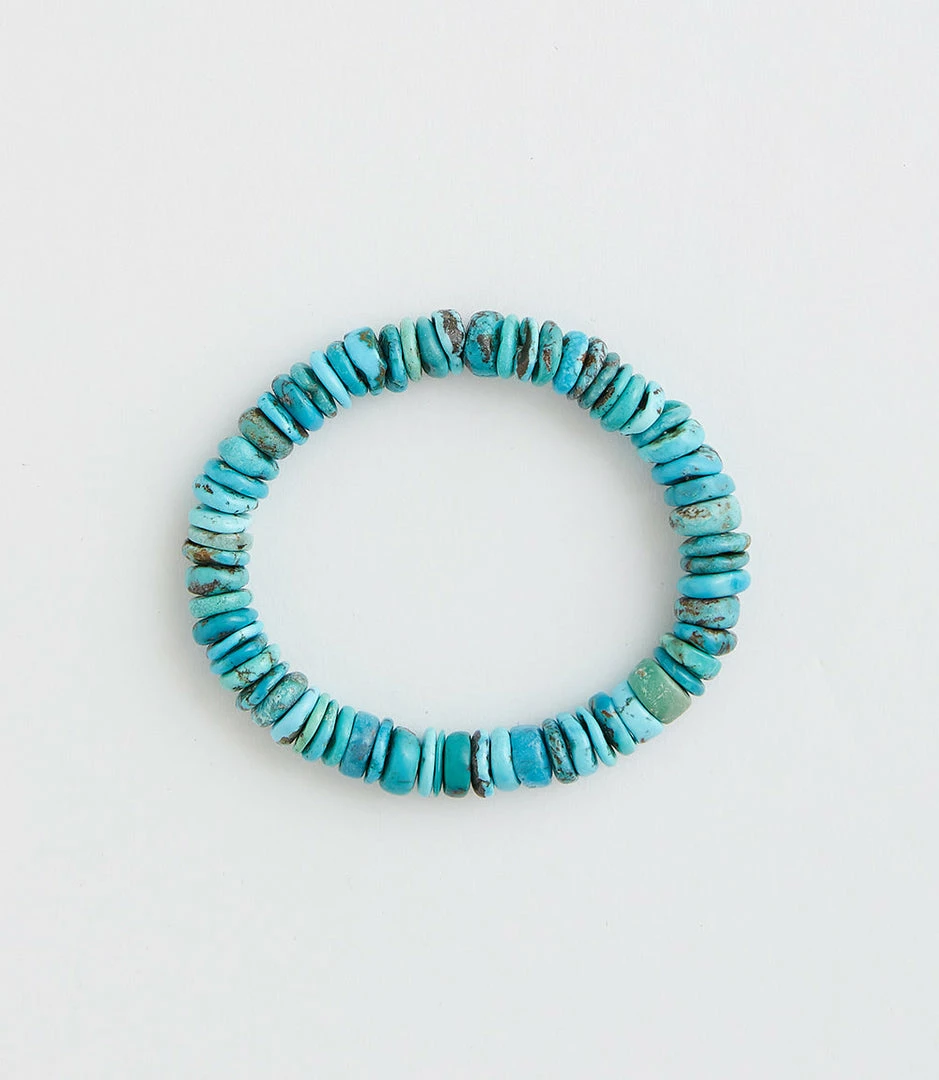 Made by Navajo Artist Ashley Sanchez, this beautifully crafted bracelet is made of turquoise stones with hints of earthy tones.